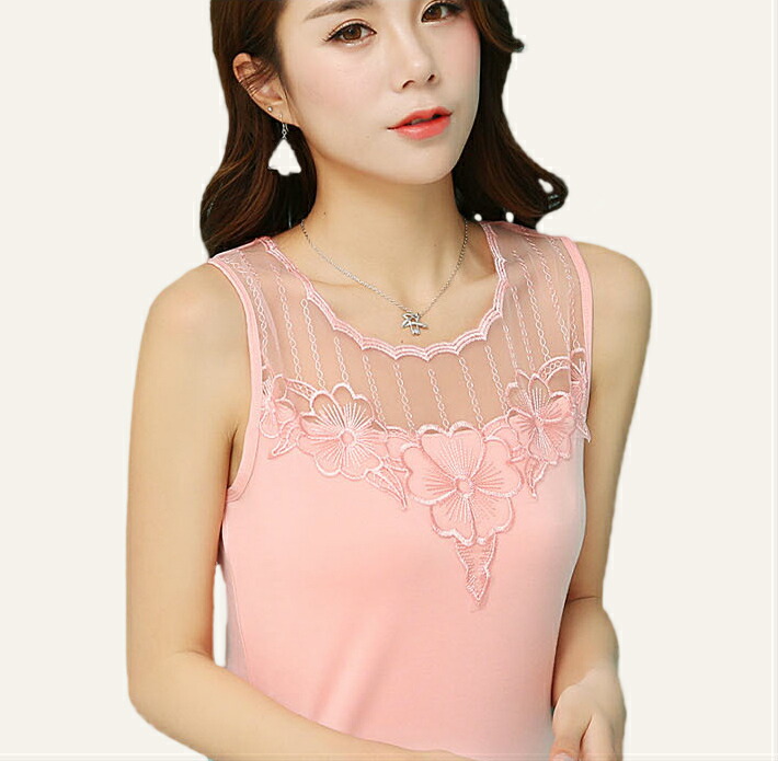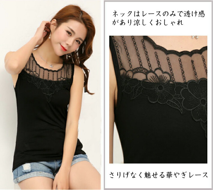 レースインナー 花柄 刺繍 レースタン