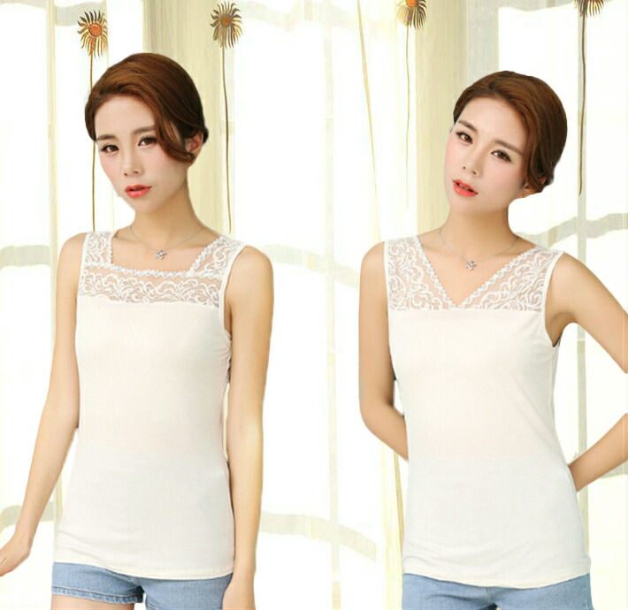 レースインナー 花柄 刺繍両面Vネック