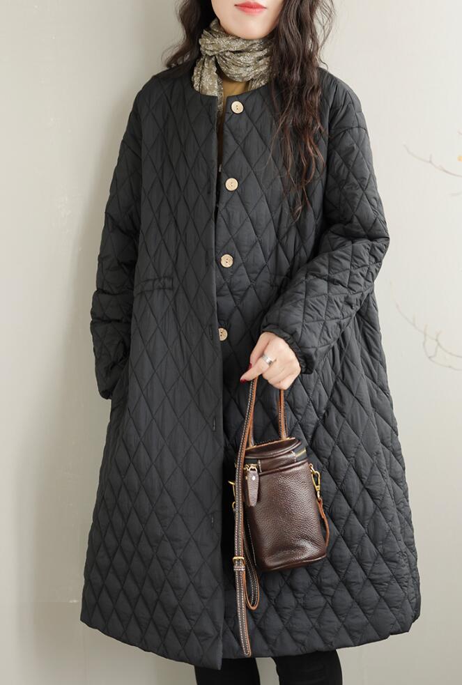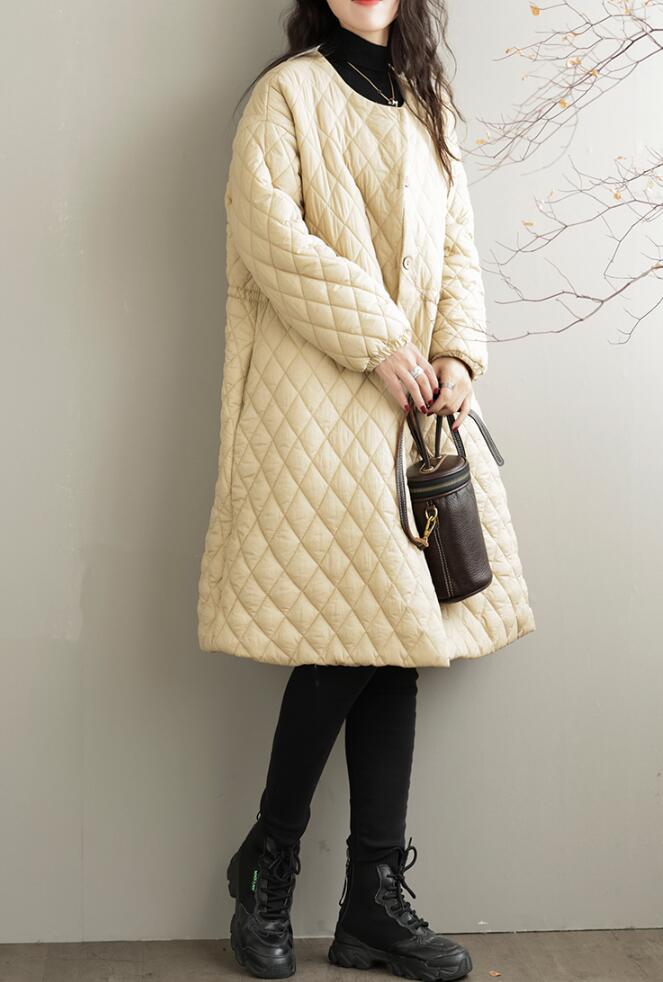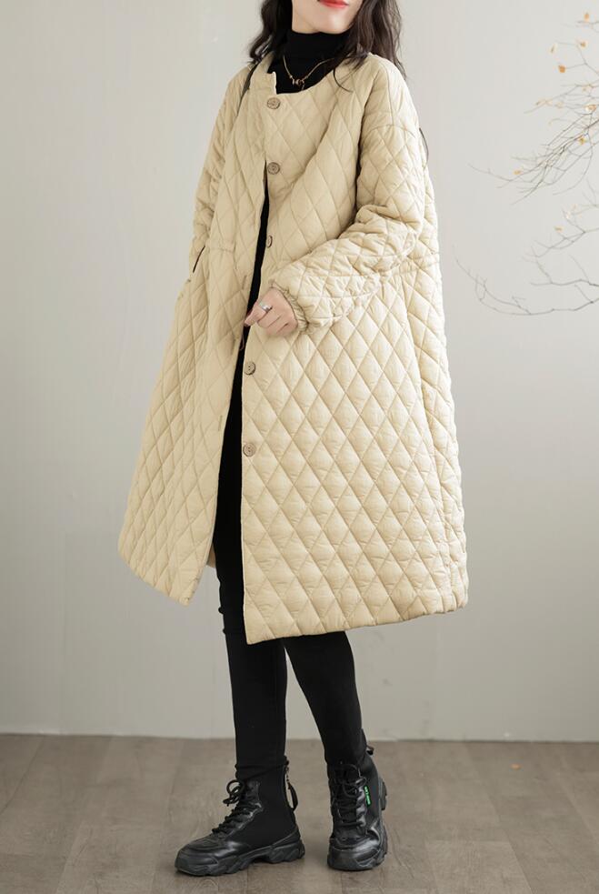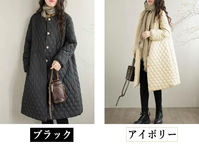 キルティング ロングコート ノーカラー