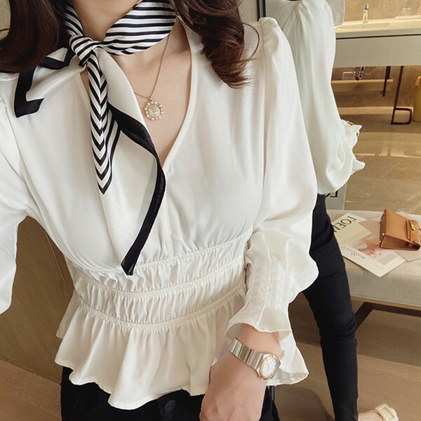 シアースリーブ ドッキングシャツ ボウタイシャツブラウス