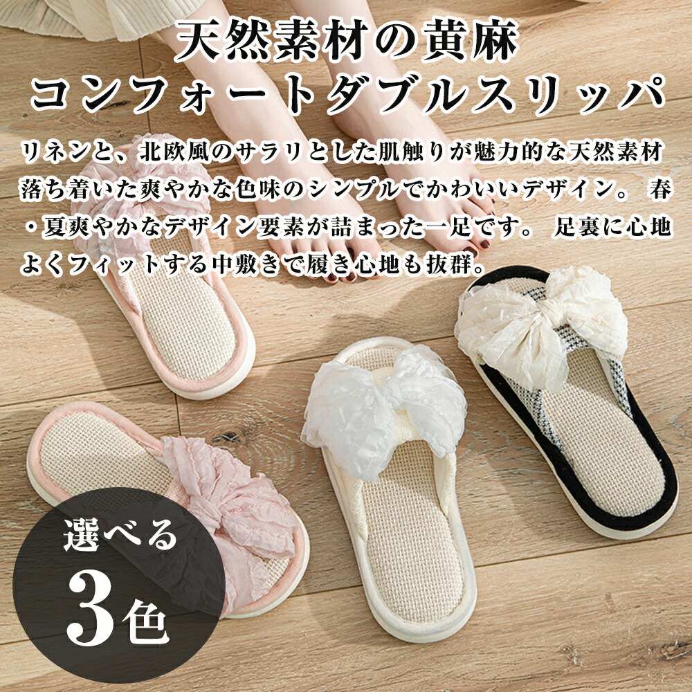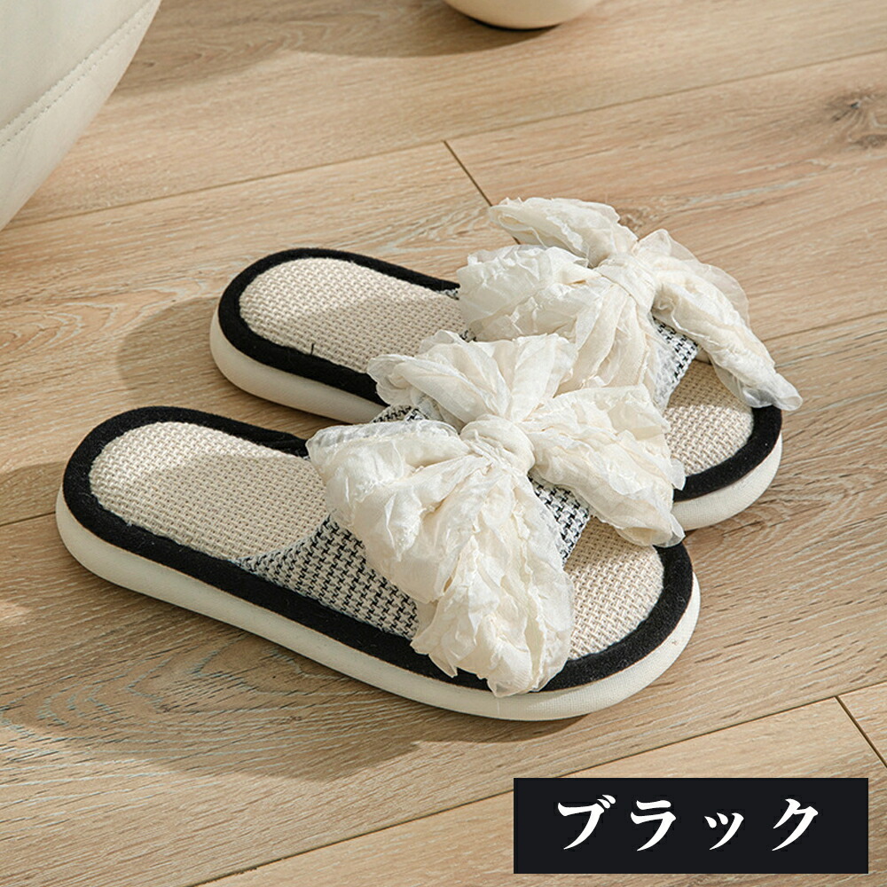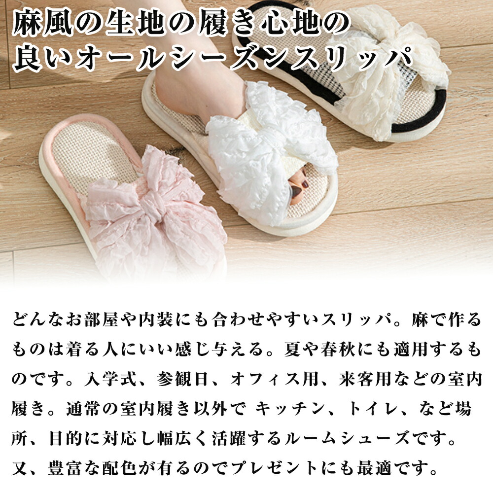 スリッパ 夏用 室内 麻 前開き リネ