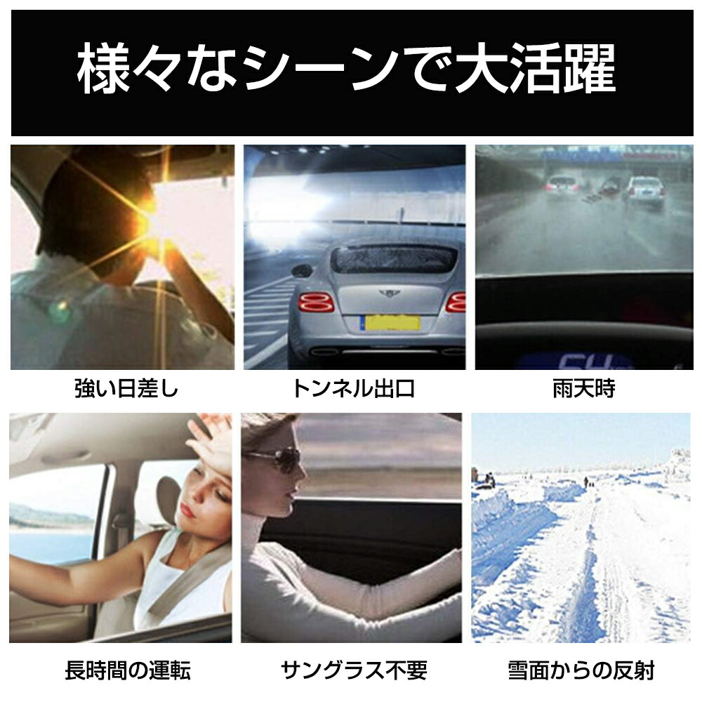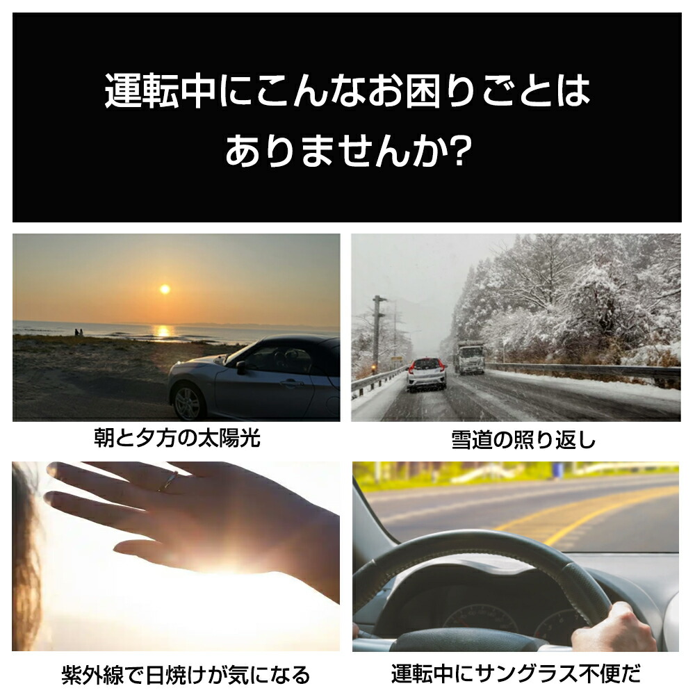 商品情報【偏光機能】 あらゆる光の眩しさを軽減する偏光機能をもつサンバイザーは、照り返しや乱反射を防ぐことができるので、くっきりとした視界を保つことが可能です。【昼夜兼用】 本サンバイザーは走行中の日差しや対向車のヘッドライトの眩しさを軽減し、目を守ります。可視光線透過率は22%以下なので、夜間の使用は強光がある場合のみ使用してください。【99.4%のUVカット率】 偏光サンバイザーは99.4%のUVをカットし、目が疲れにくく、顔を紫外線から守れるので日焼けの予防にもなります。【取付簡単】 使用しない時はサンバイザーに2枚とも折り畳めますので視界を遮る事も有りません、使いたい時だけサッと降ろし、トンネルに入ってサッと上げる等簡単にオンオフ出来ます。サンバイザー装着ですので、横からの日差しにも対応出来ます【適用な車類】 SUV、商務用車、ワンボックス/ミニバン、ワゴンまでも適用可能です。こちらの自動車用サンバイザーは高品質で、丈夫な製品で、長持ちできます。元サンバイザーの厚みは1.9センチ以上になる場合には、本製品が適用ではないんですが、予めご了承をお願いします。