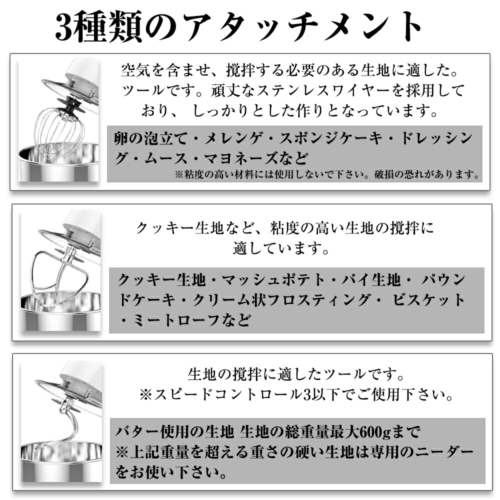 スタンドミキサー 大容量 3種類アタッ