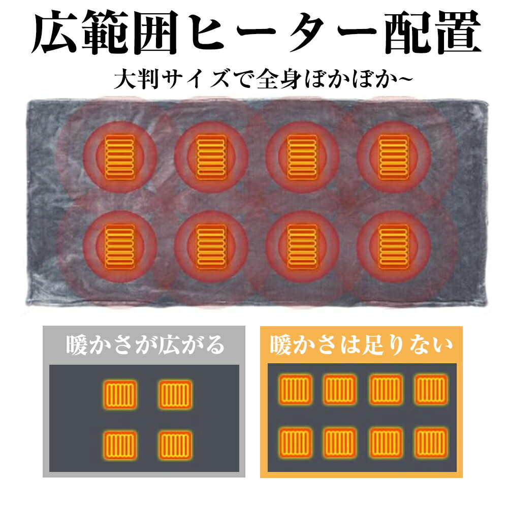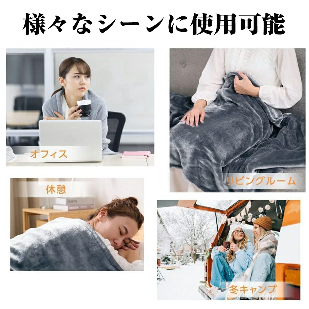 電気毛布 USB ブランケット 8枚の加熱エリア 150cmx80cm フランネル素材 ファスナー付き 3段階温度調整 省エネ 肩掛け 膝掛け オフィス アウトドア泊用 車中泊 洗える 防寒対策 暖房器具