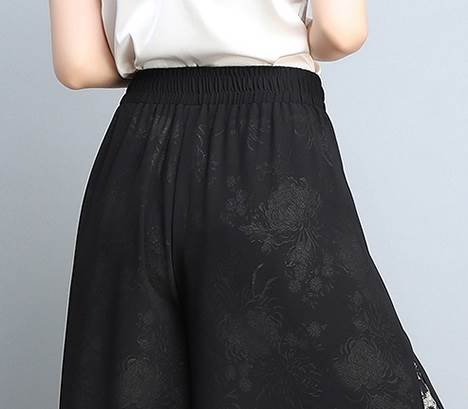 シースルーに柄を重ねた奥行きのあるワイドレッグパンツ