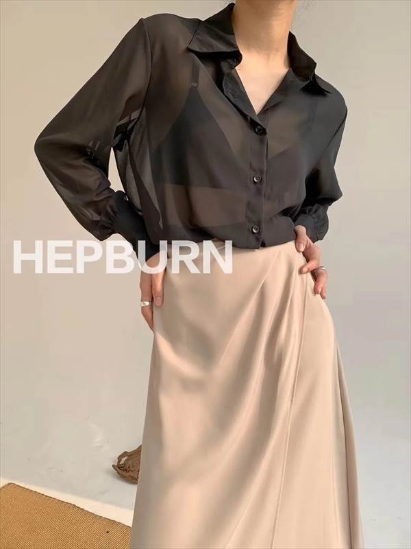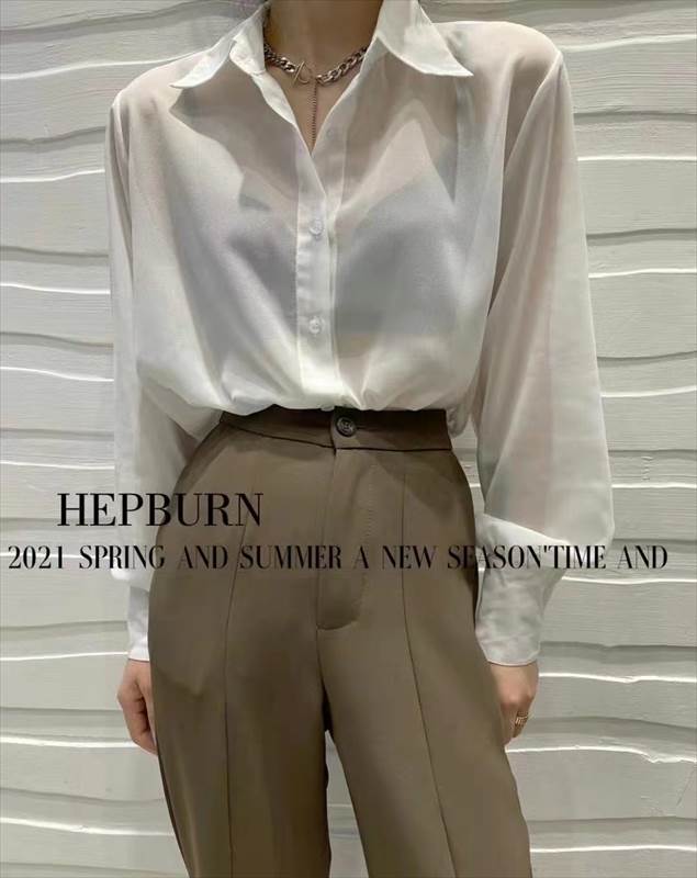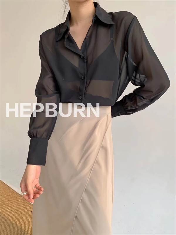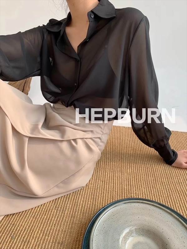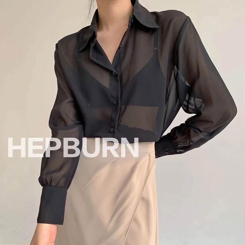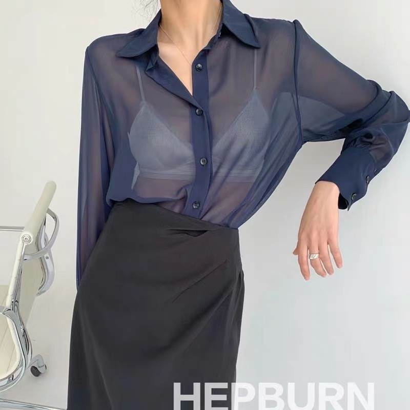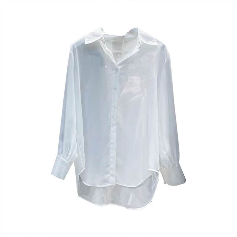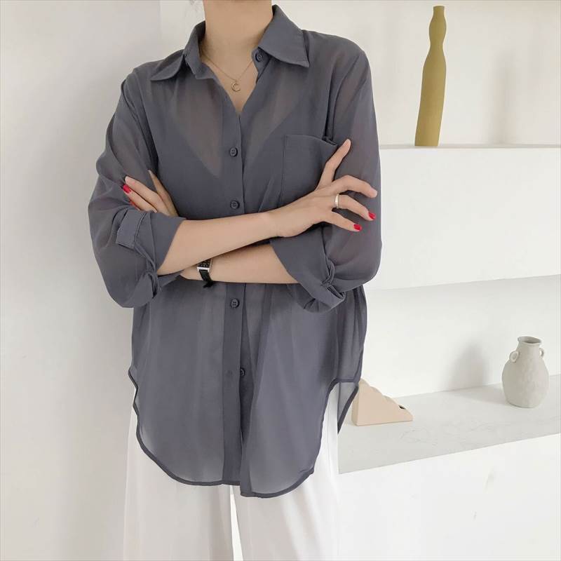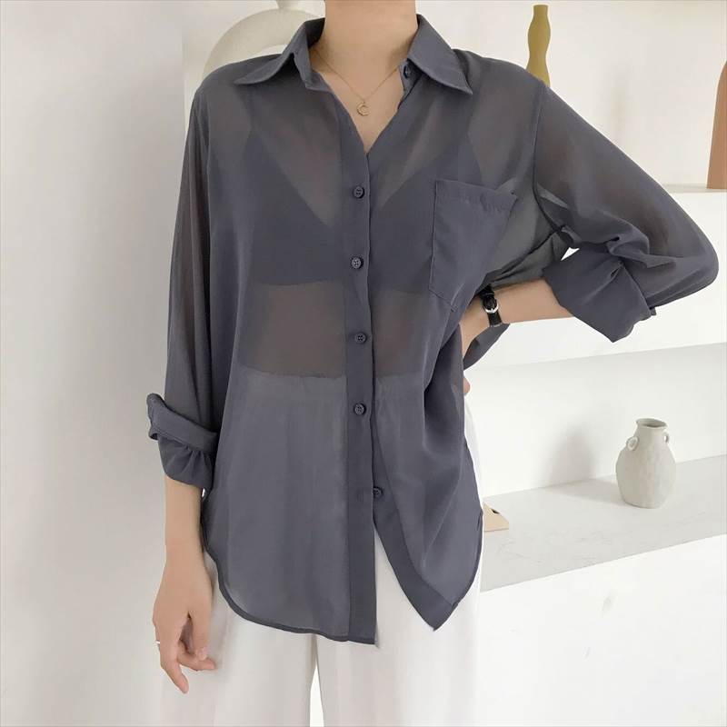 レディース シースルー ブラウス 長袖 トップス シャツ 前開き 透け感 シアー 羽織 春 夏 秋 ゆったり 大人 女子 かっこいい セクシー シック きれいめ かわいい シンプル カジュアル
