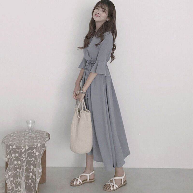 カシュクールワンピース ワンピース フレアワンピース 膝下 ロング ロング丈 袖あり 半袖 5分袖 五分袖 Vネック シフォン ウエストマーク ウエストリボン かわいい 大人可愛い きれいめ シンプル カジュアル 大人 おしゃれ お洒落 大人可愛い 大人女子 無地 春 夏 秋 10代 20代 30代 レディース デート お出かけ 公園デビュー 女子会 休日 着回し 普段使い 重ね着 韓国 韓国系 オルチャン ファッション サイズ M L XL 2XL 3XL 4XL 黒 ブラック 灰色 グレー