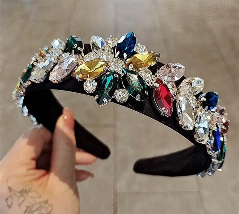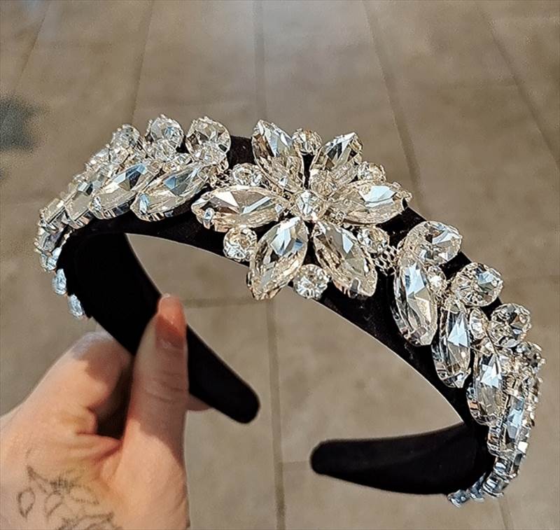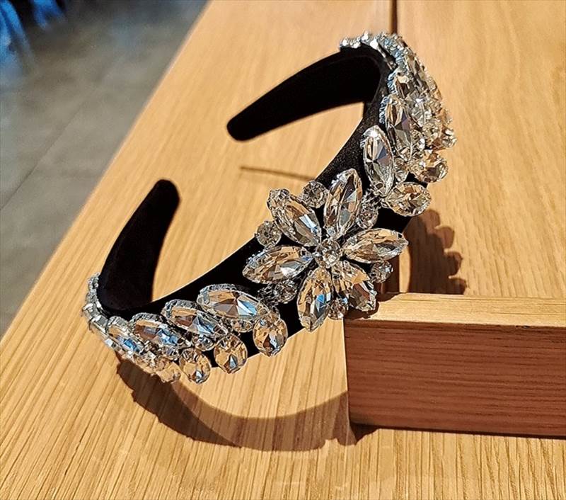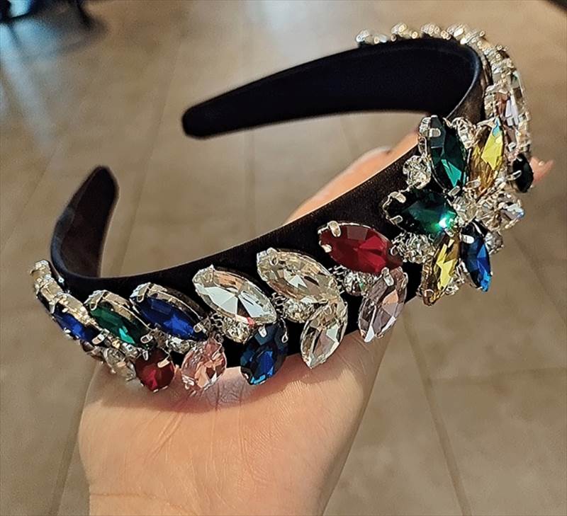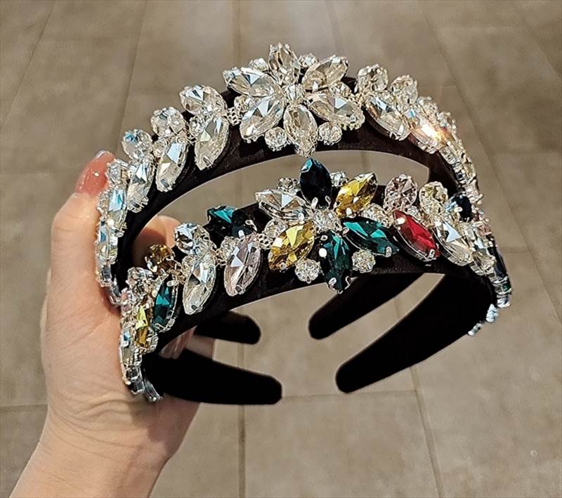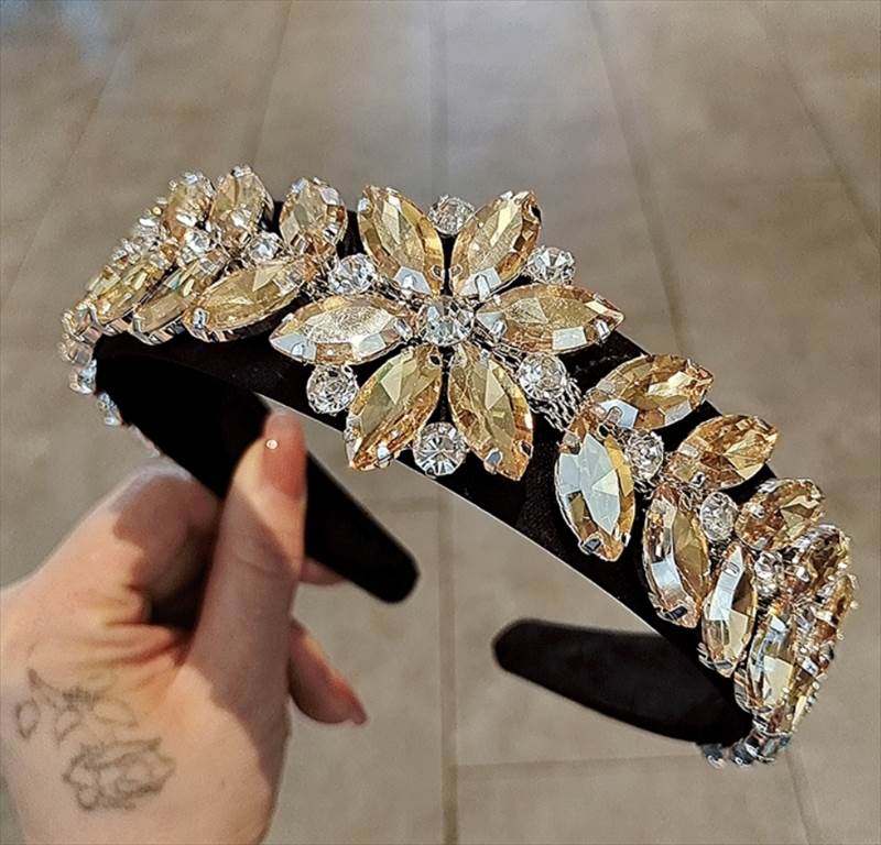 ヘアアクセサリー カチューシャ ヘッドバンド ハイグレードクリスタル ワイド キラキラ ゴージャス レディース かわいい 大人 カラフル イエロー クリア