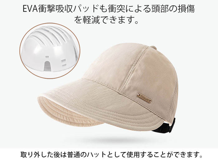 内部に衝撃吸収インナープロテクターが装備され、衝撃力を効果的に緩和・分散します。 外すと、普通のバケットハットとして使用可能!