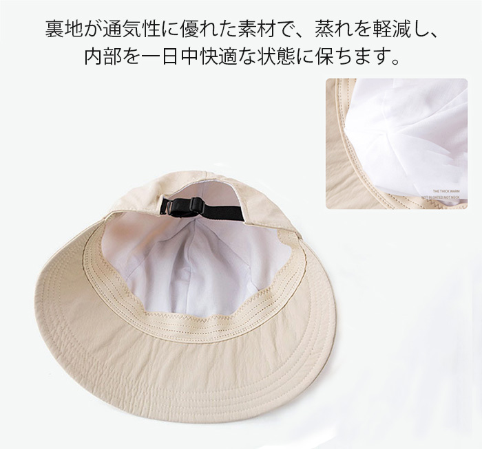 風を防ぐ紐は付いています。帽子のサイズを調整し、快適な着用感を維持しながら、 風で飛ばされるのを防ぐことができます。