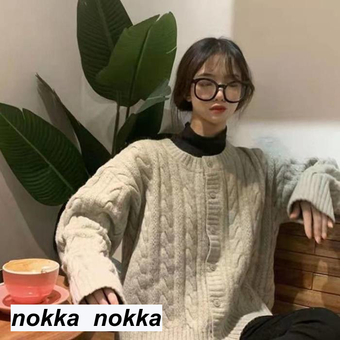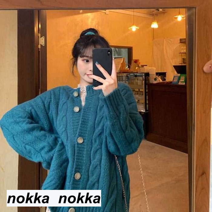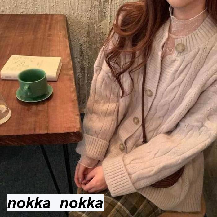 ニット カーディガン クルーネック ボ