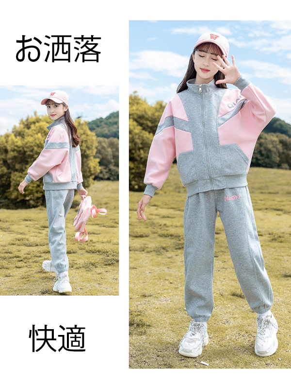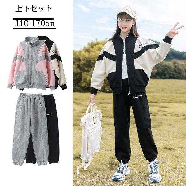 セットアップ キッズ ジャージ 女の子 春服 運動着 スポーツウェア 上下セット 小学生 通学 スウェット 体育 パーカー+パンツ HIPHOP ダンス衣装 ジャージ スウェット