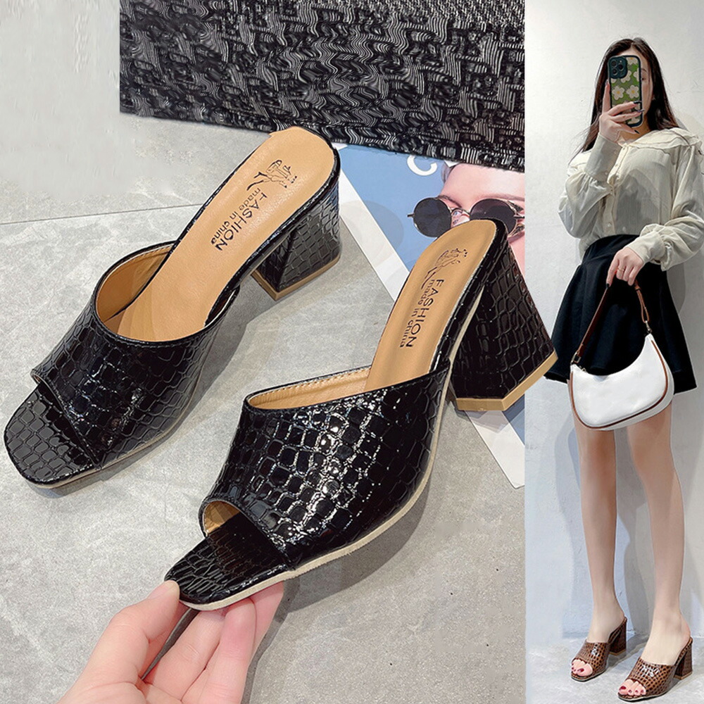 レディース クロコ型押し ミュールサン