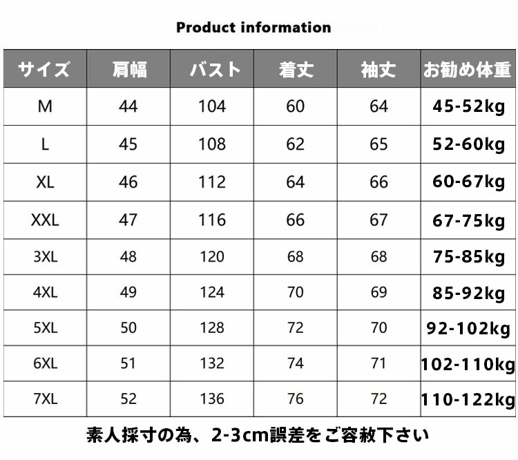 サイズ: M L XL 2XL 3XL 4XL 5XL 6XL 7XL