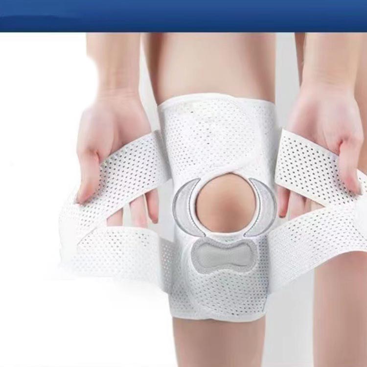 膝サポーターの両側に2本ずつのスプリングを内蔵し、関節の自然な動きとともに流れるように設計されており、運動や激しい活動時に着用するのに理想的なブレースです。