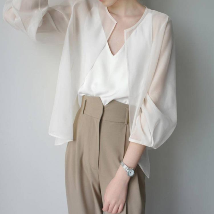 シフォンブラウス シアーブラウス ボリューム袖