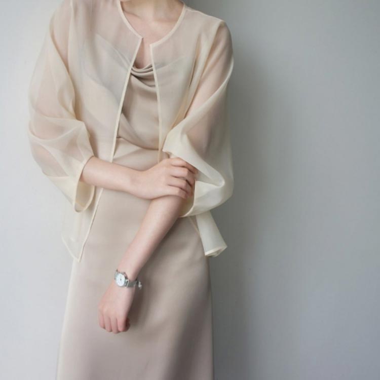 シアートップス ノーカラー レディース