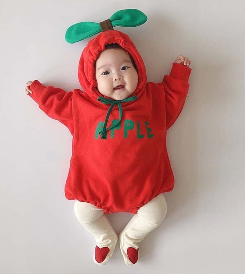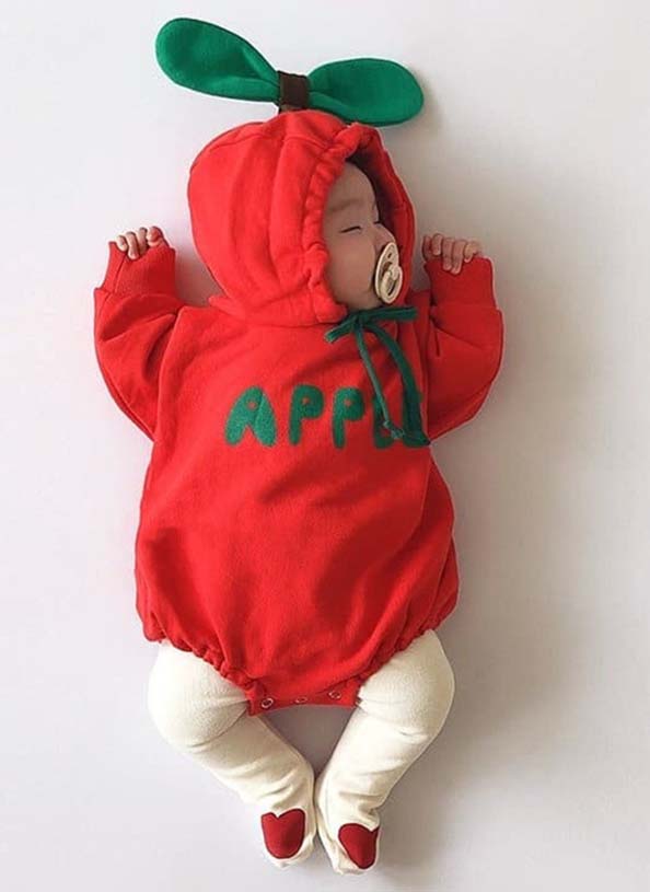 ロンパース 女の子 スウェット 男の子 ベビー カバーオール ガールズ ベビー服 秋 春 可愛い 秋冬 赤ちゃん 洋服 柔らかい 服 出産お祝い 新生児 お宮参り 百日祝い 入園式 お食い初め リンゴ 66cm 73cm 80cm 910cm 100cm