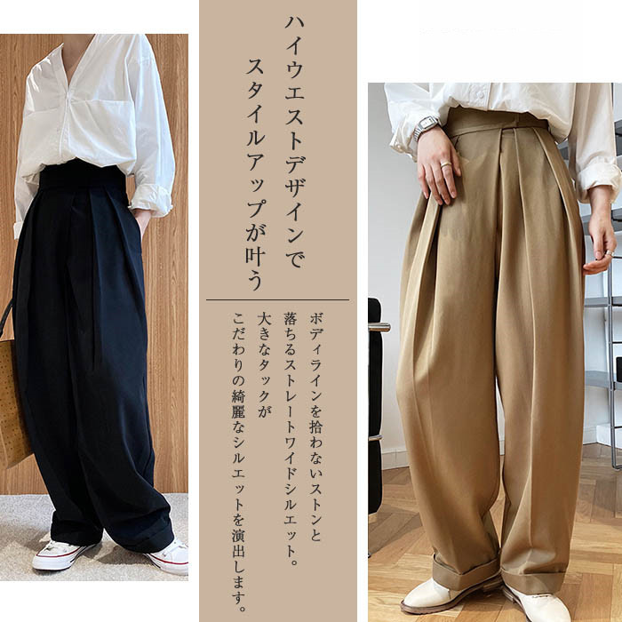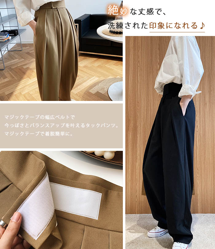 タックワイドパンツ レディース 春秋