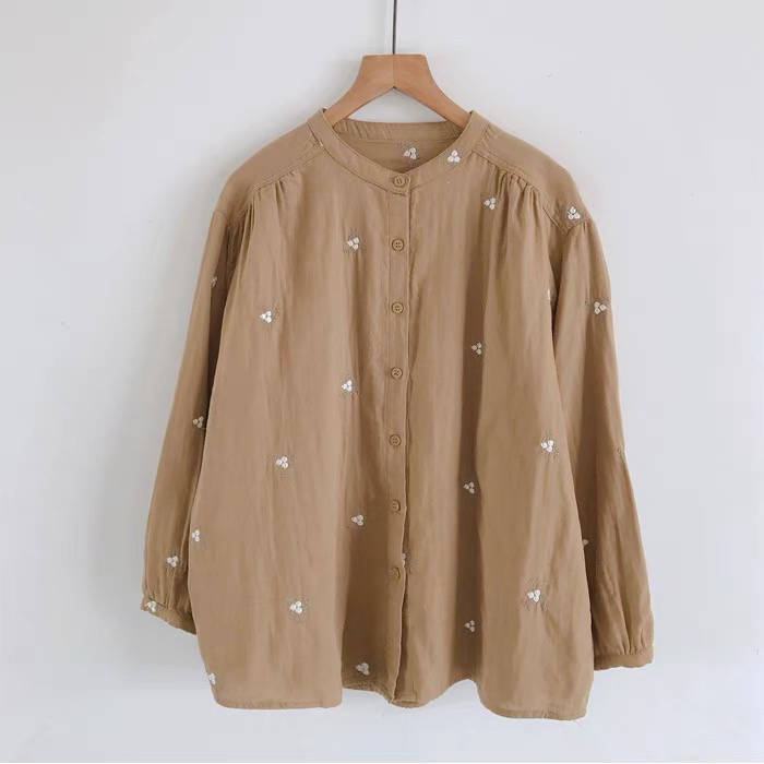 花柄 刺繍 ガーゼ シャツ 長袖 バン