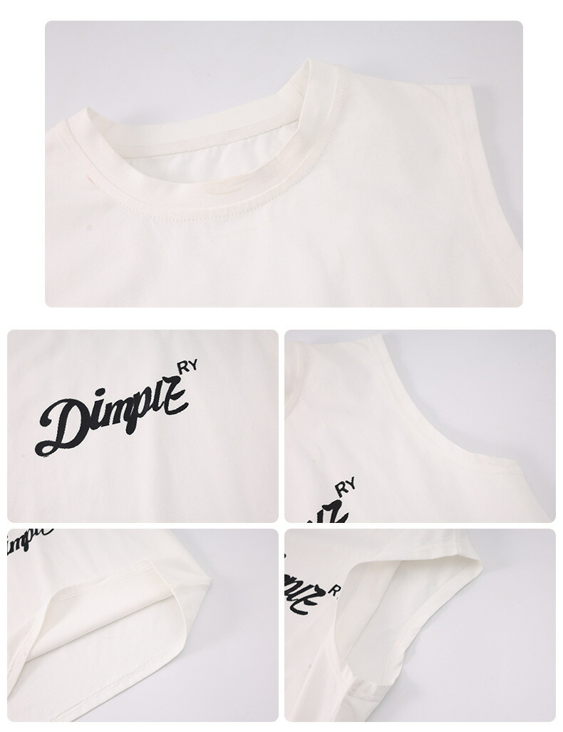 タンクトップレディースTシャツノースリーブUネックロゴプリント