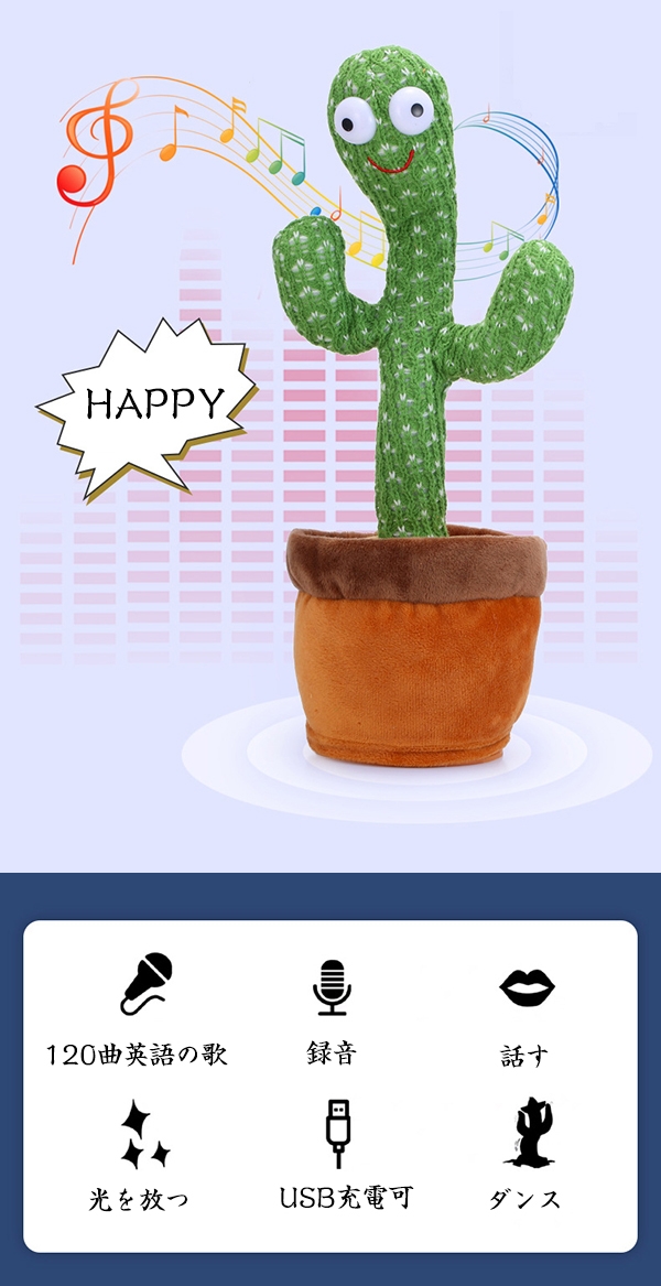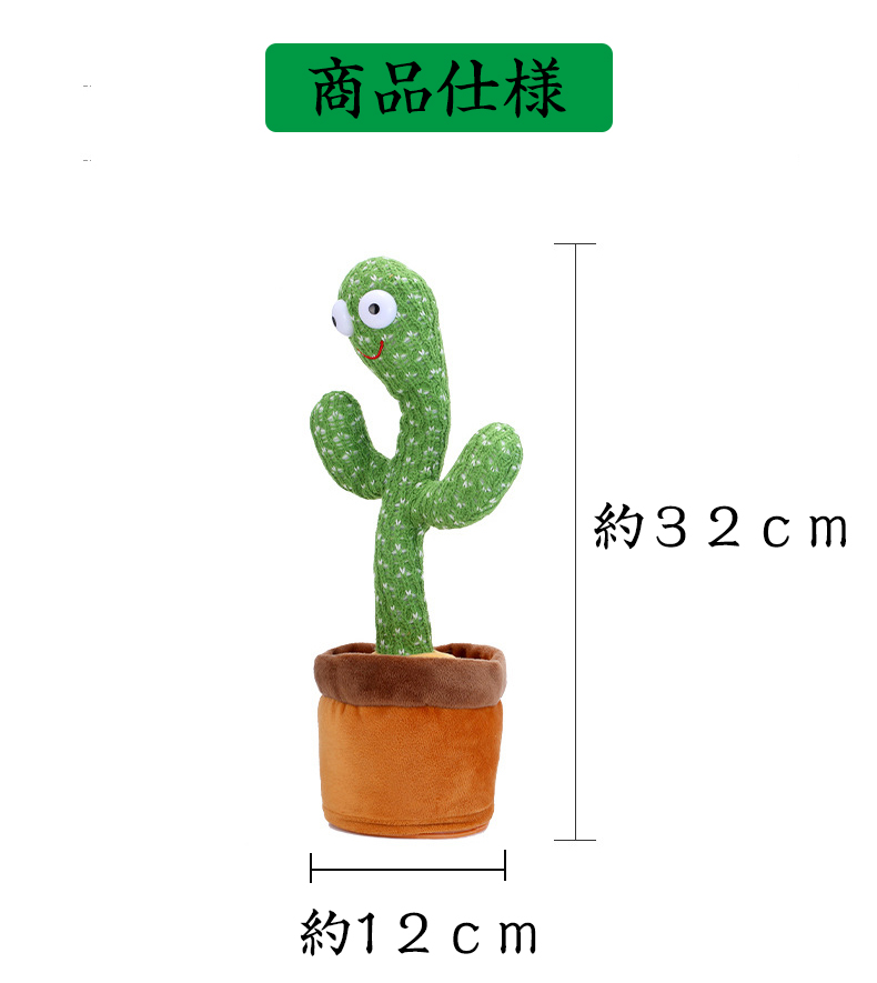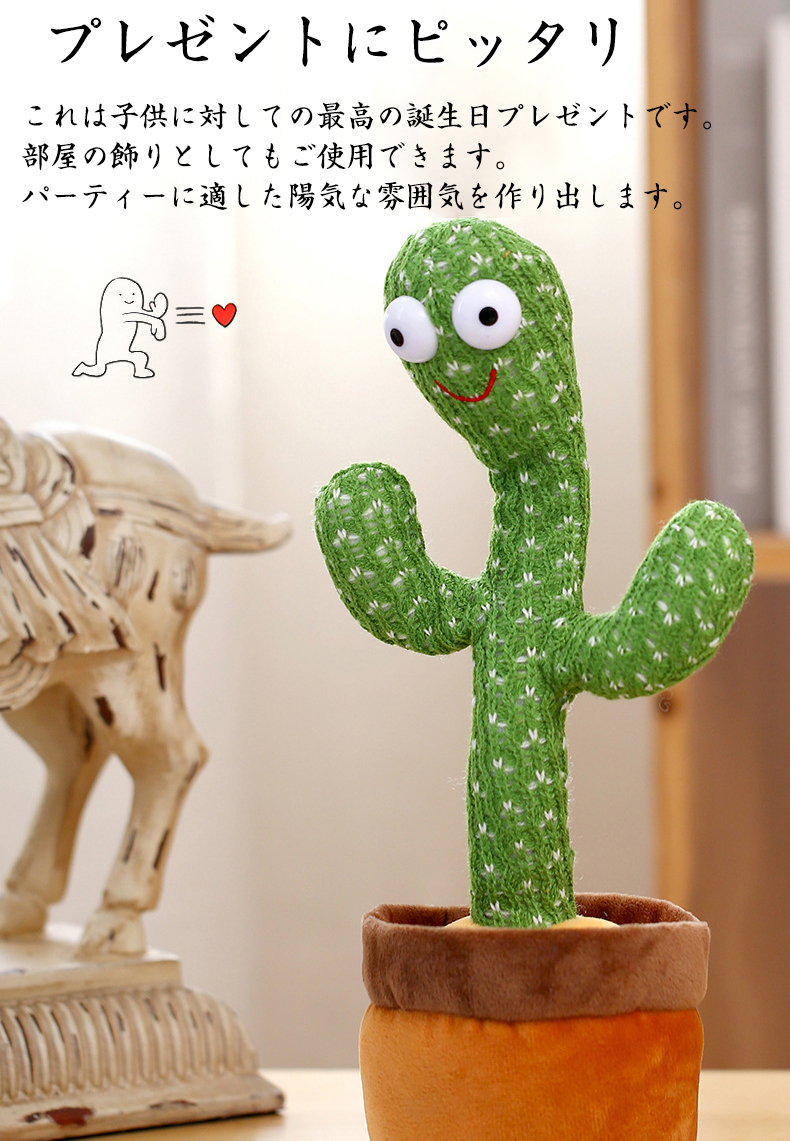 動く 歌う 踊る サボテン USB 電池式 玩具 おもちゃ ぬいぐるみ 可愛い 赤ちゃん ベビー キッズ 子供 女の子 男の子 ぬいぐるみ 録音 英語の歌付き おしゃべり グリーン 音楽 知育 電池