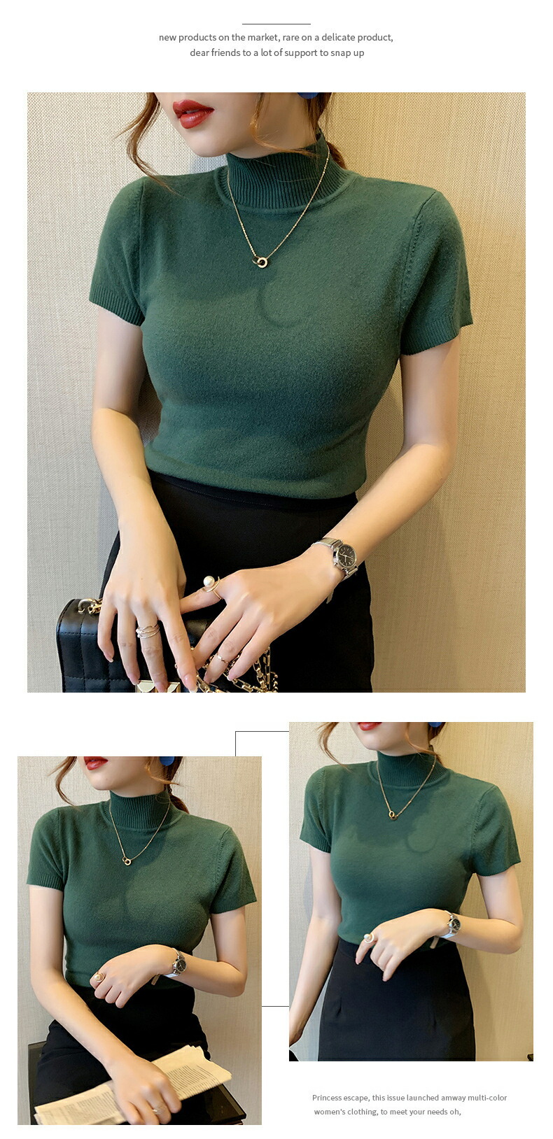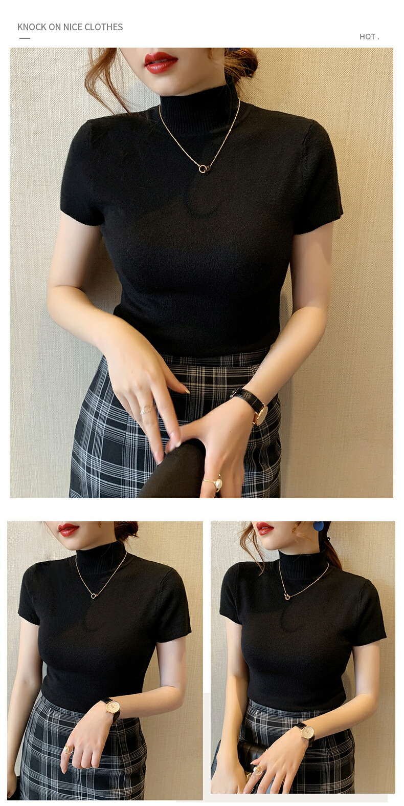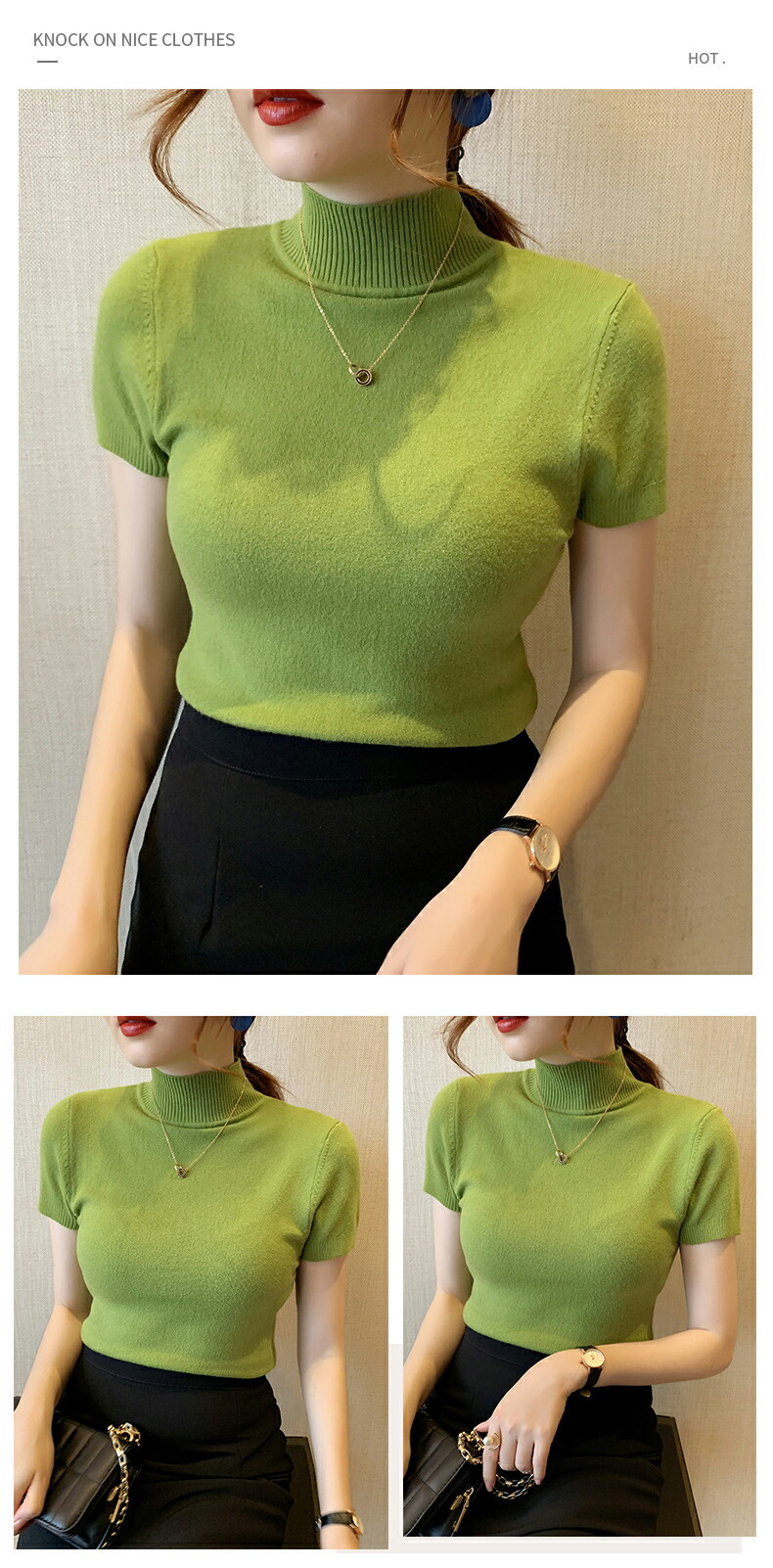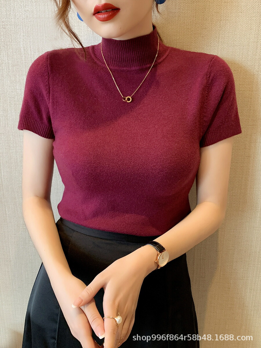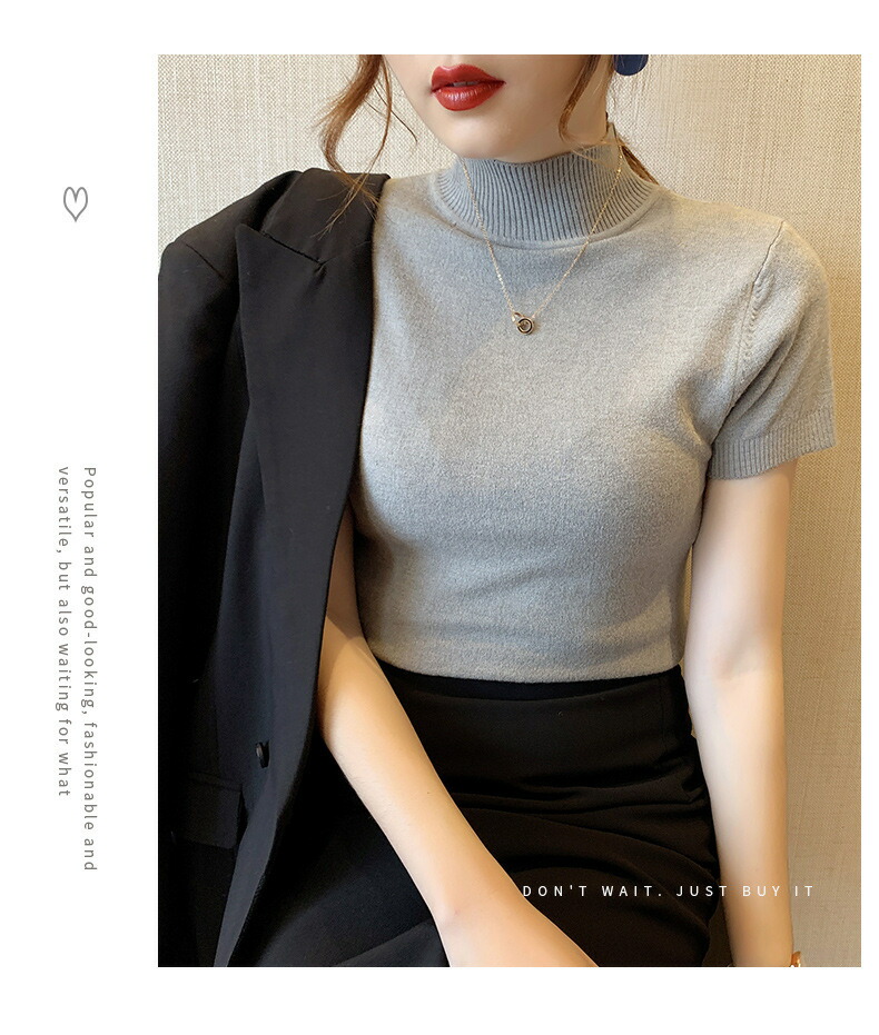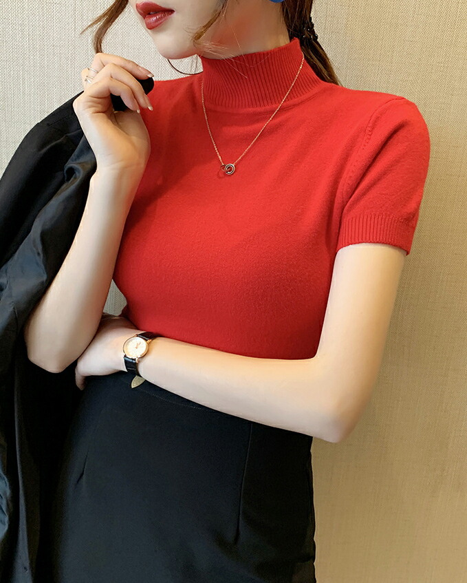 細見え効果あるリブニット 半袖 レディ