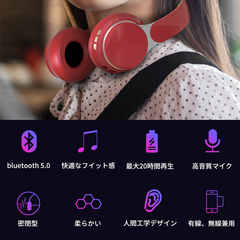 Bluetooth5.0/有線無線兼用】最先端の第2世代Bluetooth5.0ヘッドホンです。通信速度・範囲・安定性が飛躍的に向上し、従来のBluetoothイヤホンの通信問題、音飛び、途切れも改善されました。利用シーンに合わせて有線タイプにも変更できます。有線接続をすることで、音声の詳細が聴き取れます。自然で伸びやかな中高音域と、タイトで力強い低音域で音の感動をありのままに伝えます。