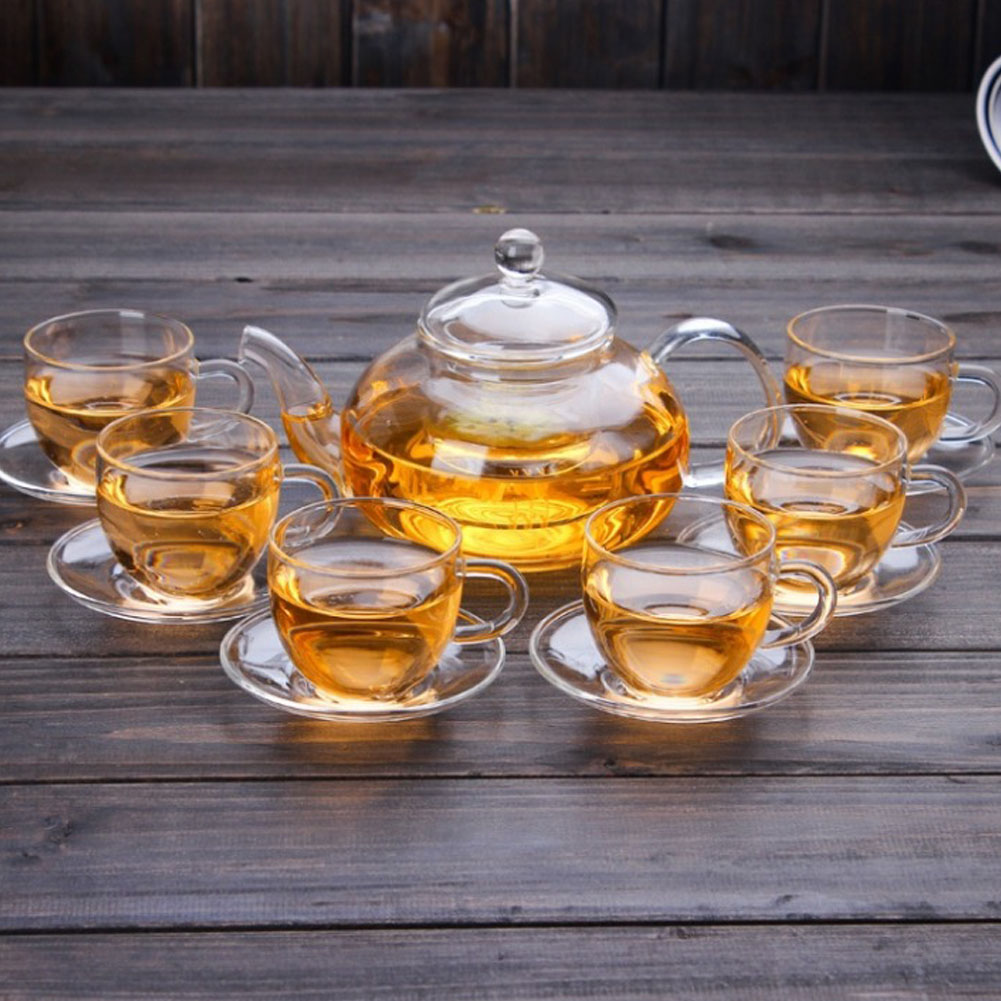 ティーポットセット 耐熱ガラス ティーカップ 6点セット 透明 ハート型ウォーマー付き おしゃれ 耐熱ガラス 急須 湯呑み 直火可 茶ポット ガラスカップ コーヒーカップ 真空断熱 紅茶 花茶 業務用