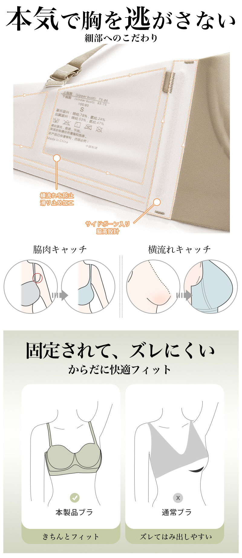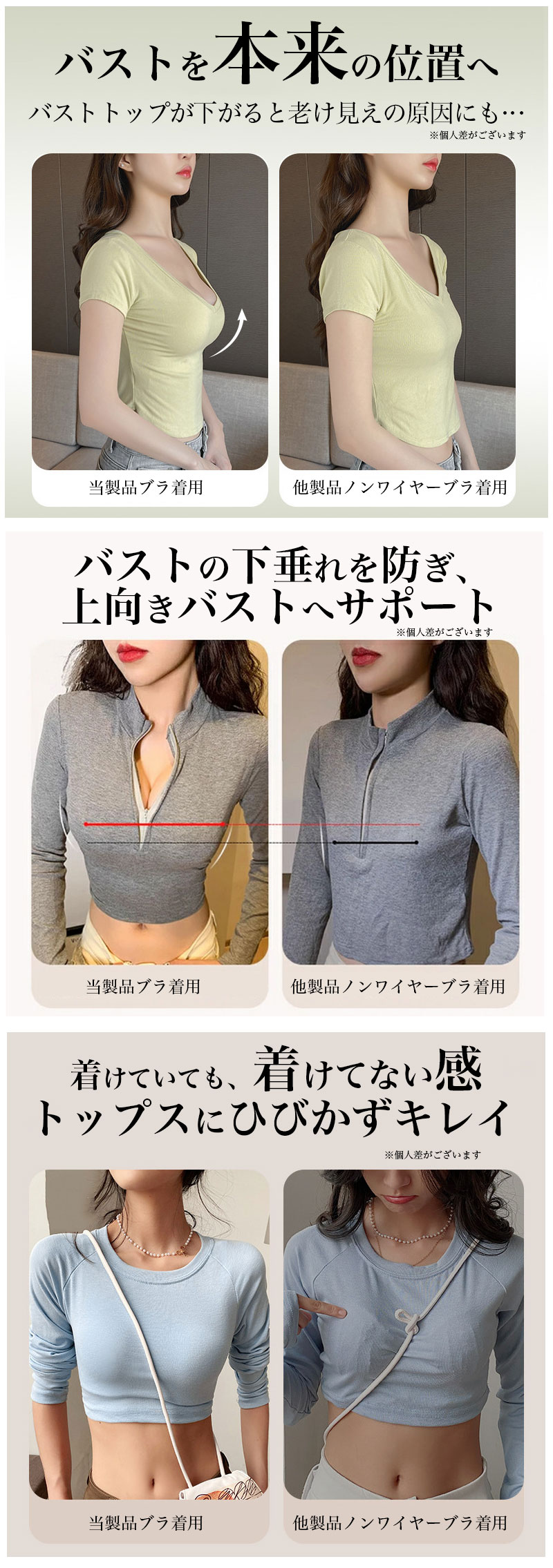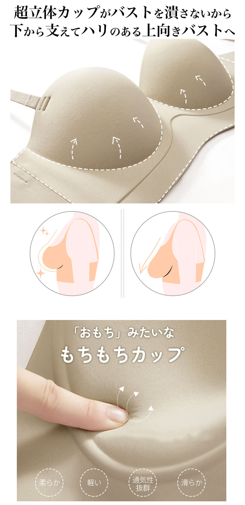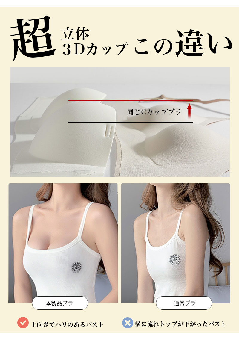 3AC もちもち Tシャツ ブラ ノンワイヤー 美胸 インナー 下着 ブラジャー Tシャツブラ 丸胸 美盛 盛りブラ 寄せ上げ