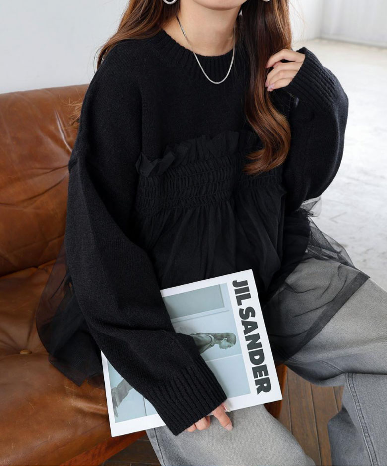 シアースリーブ ドッキングシャツ ボウタイシャツブラウス