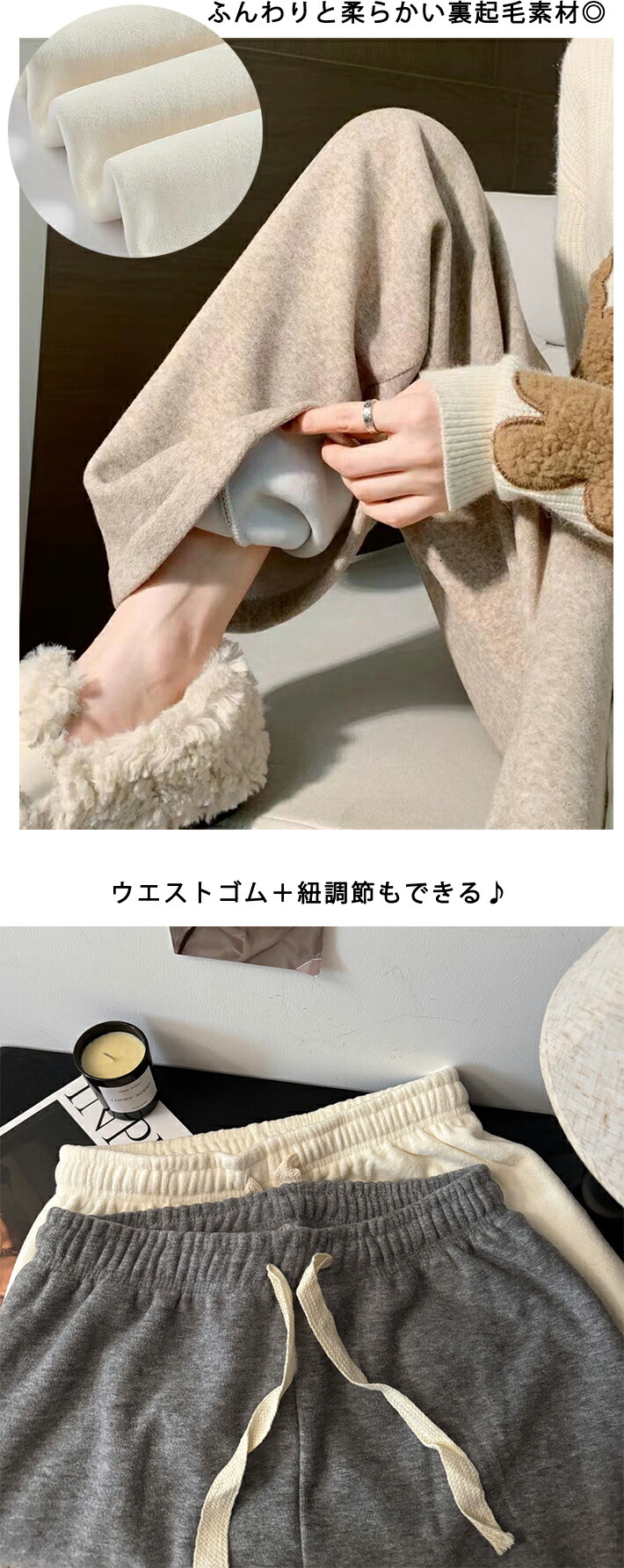 裏起毛ワイドパンツ 暖かい あたたか