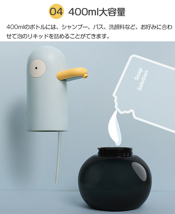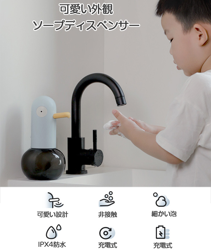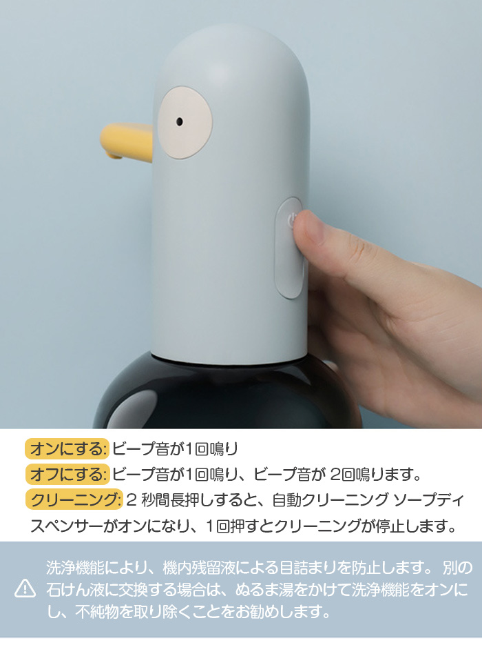 非常に可愛いソープディスペンサー ダック 動物 USB充電式 卓上タイプ日用品雑貨 文房具 手芸 バス用品 自動ソープディスペンサー
