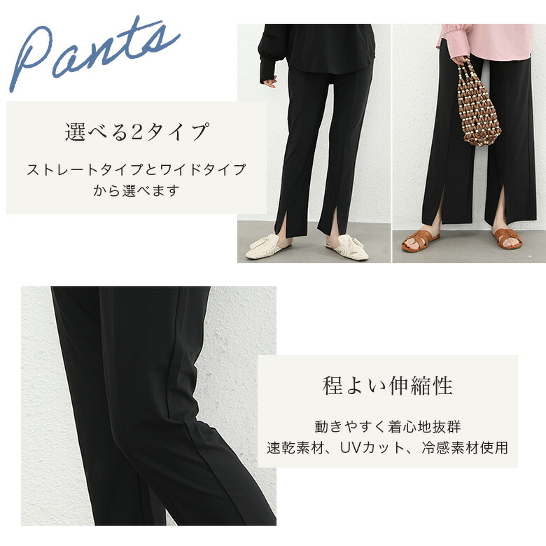 Key0: ストレートパンツ ブラック ワイドパンツ ブラック