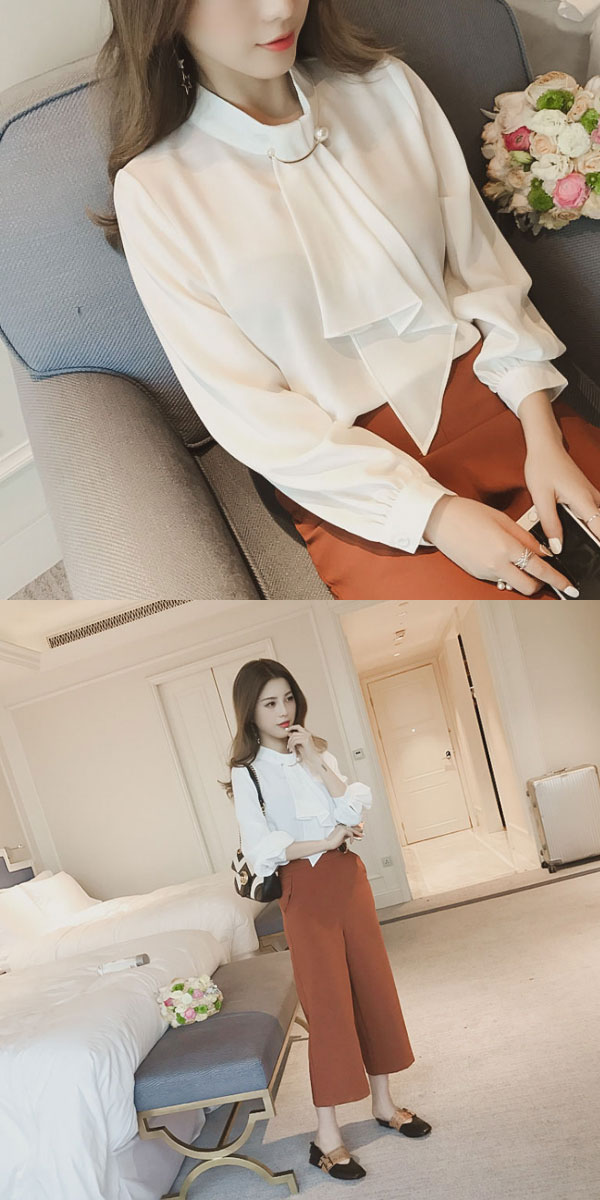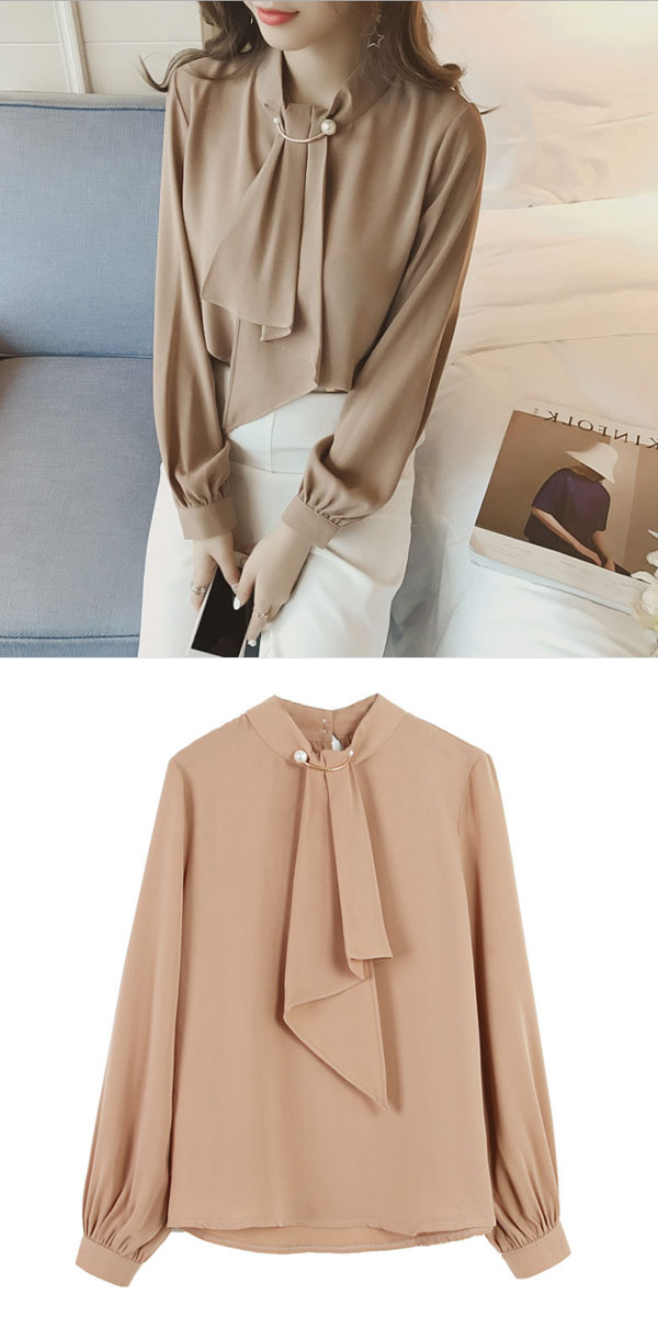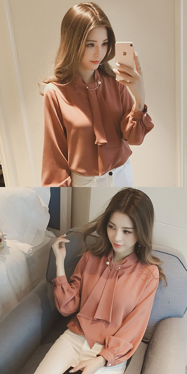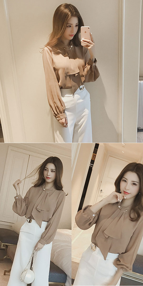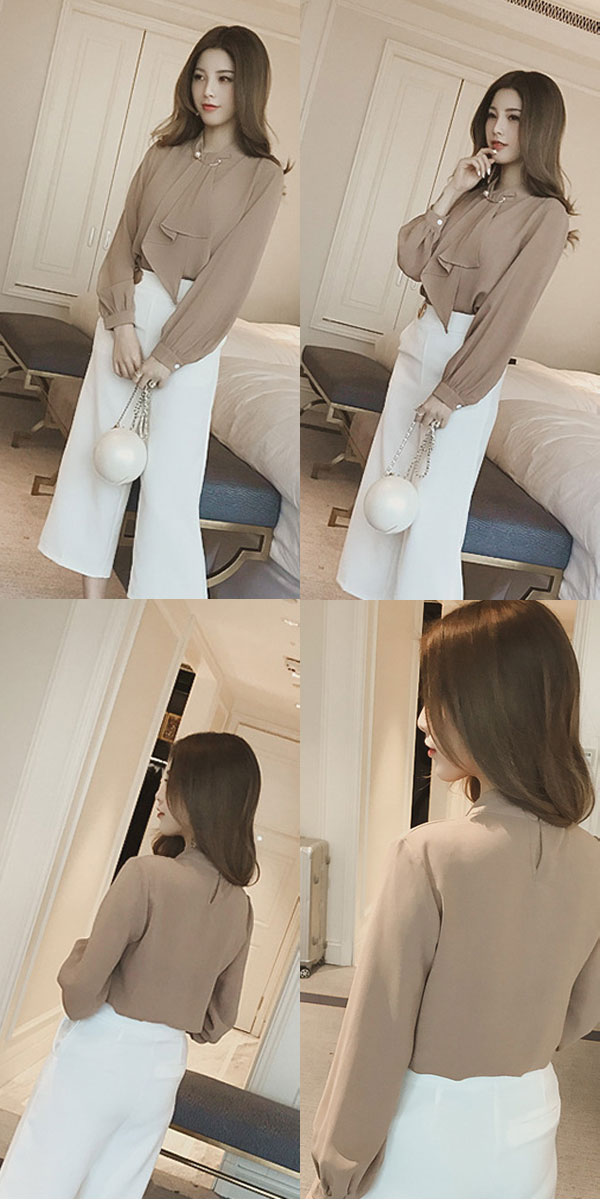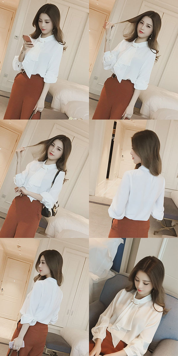 シアースリーブ ドッキングシャツ ボウタイシャツブラウス