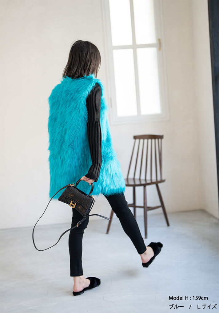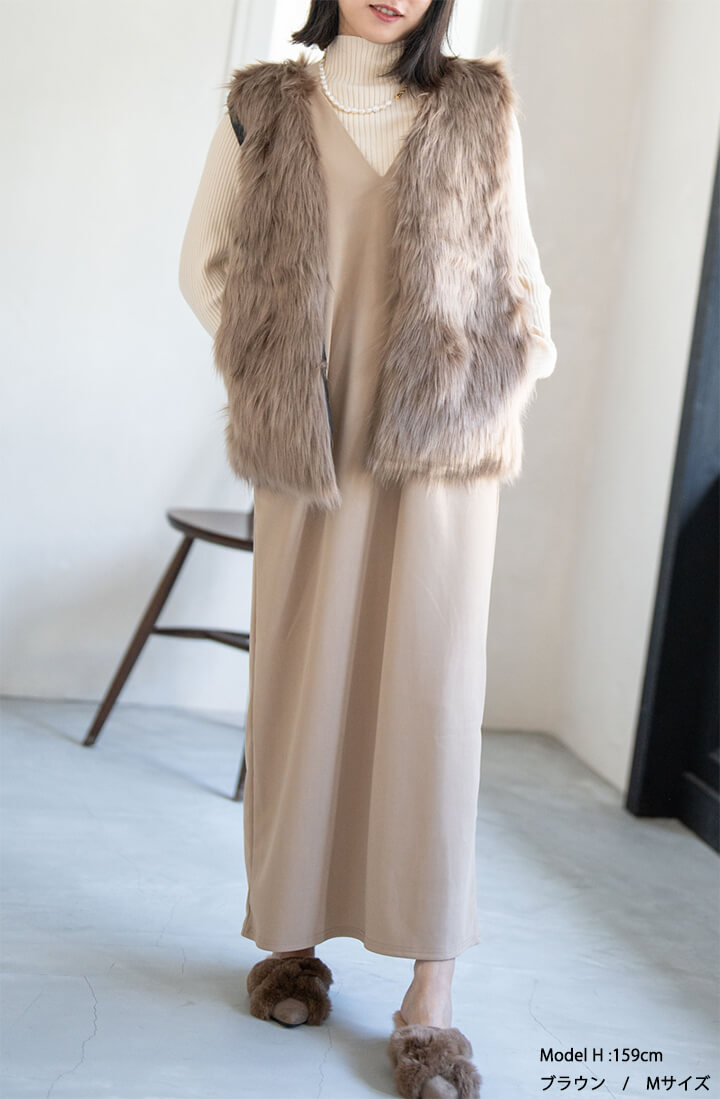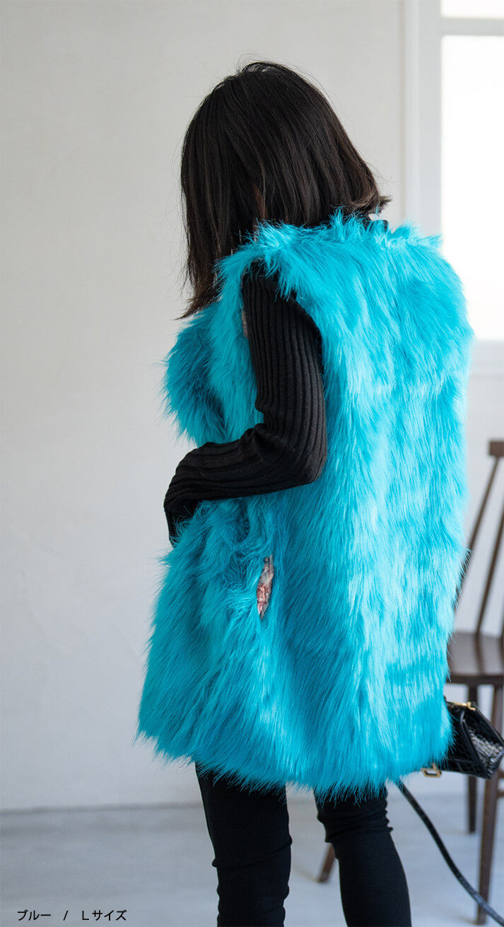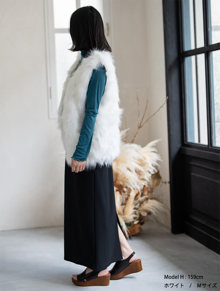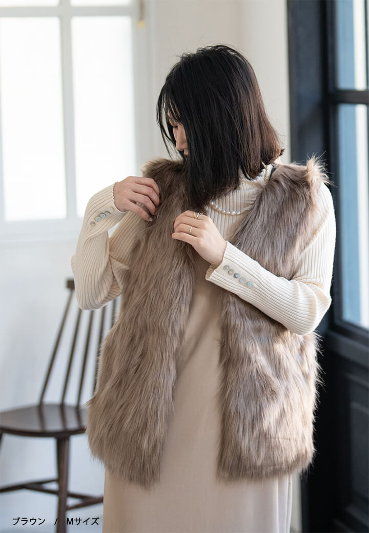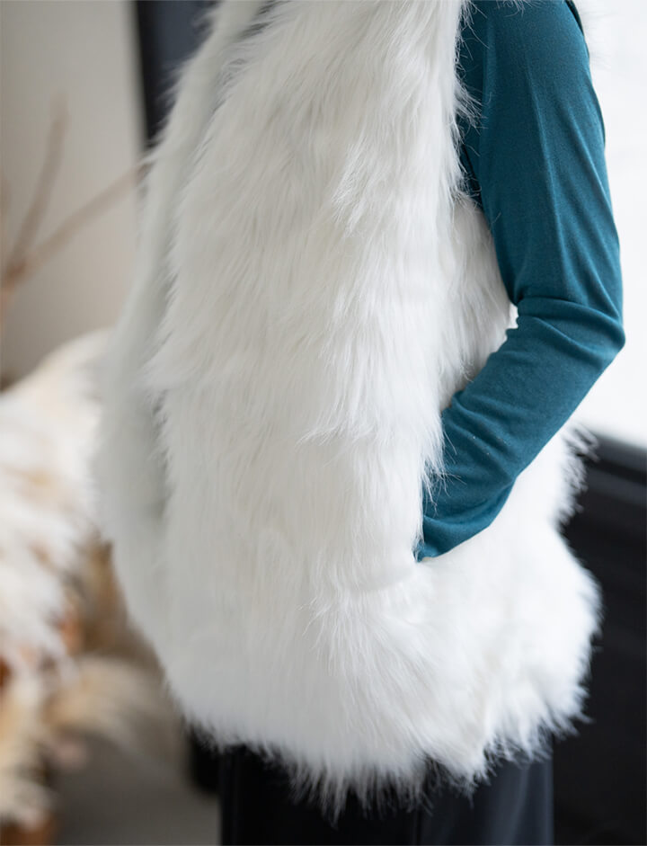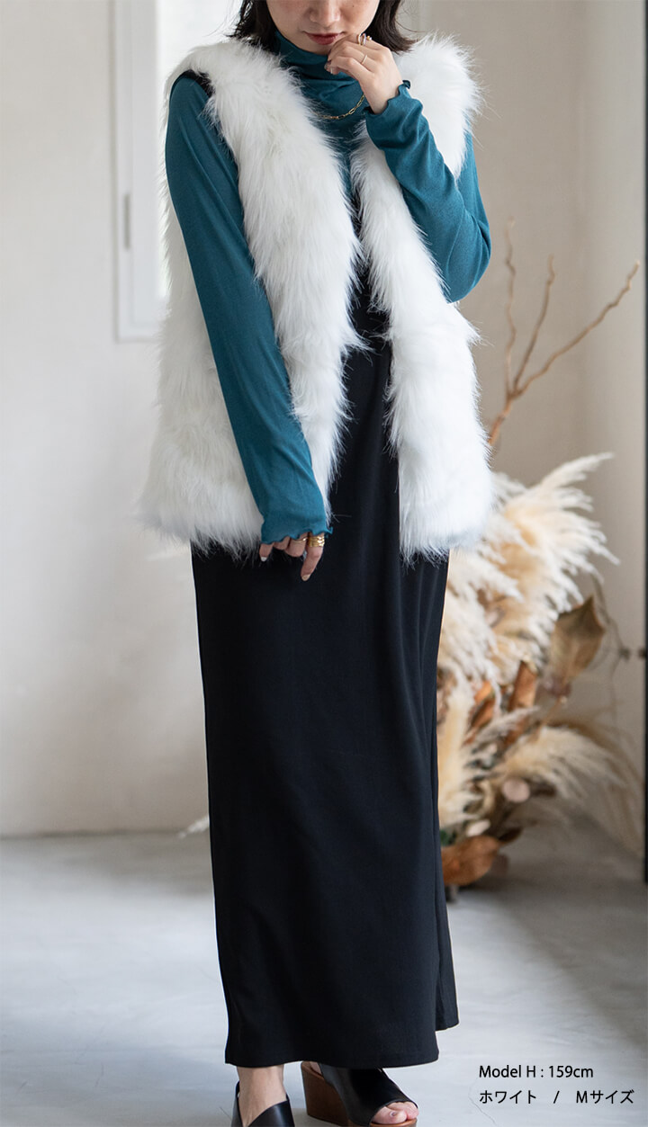★着こなしを彩るフェイクファーロングベスト