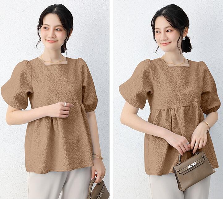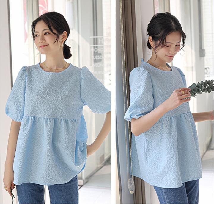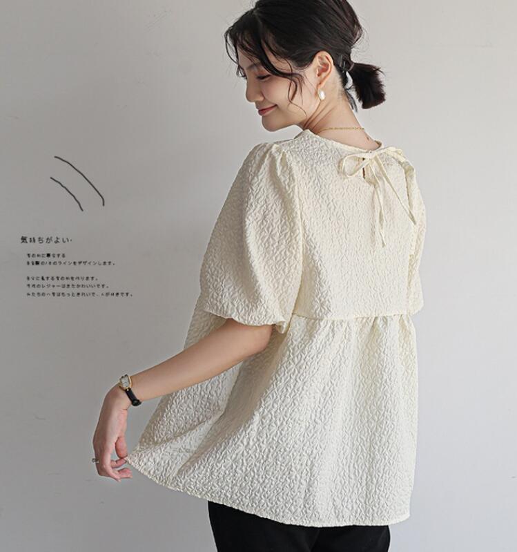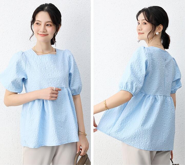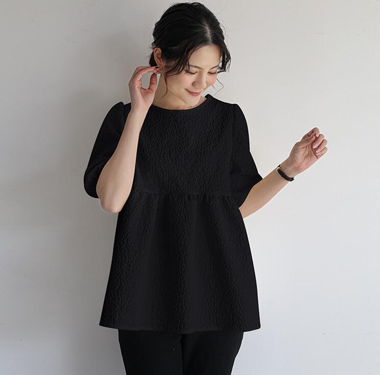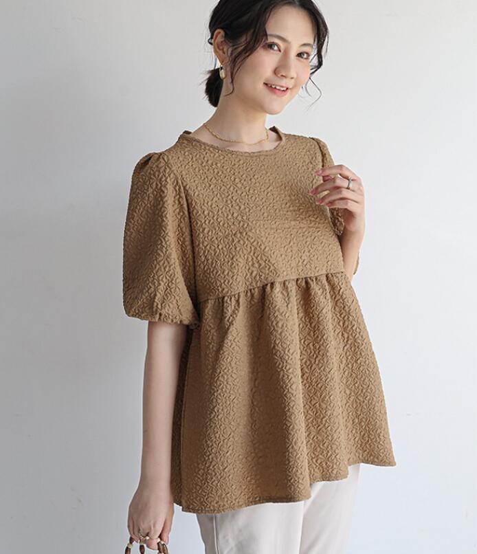 ブラウス レディース ジャガード 半袖