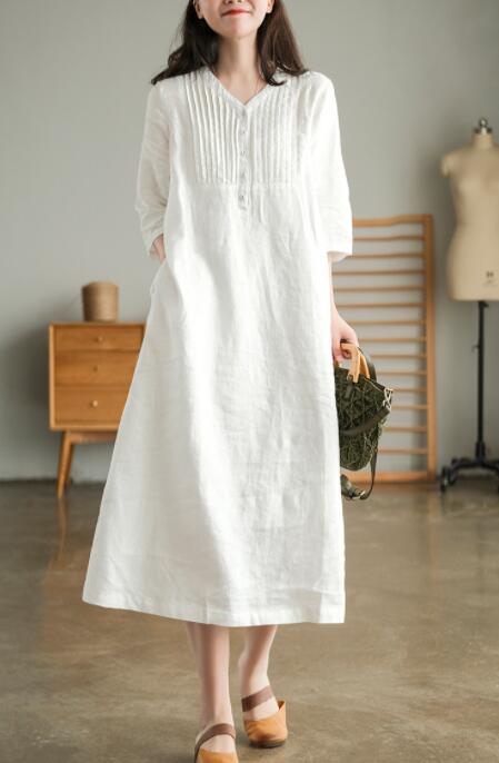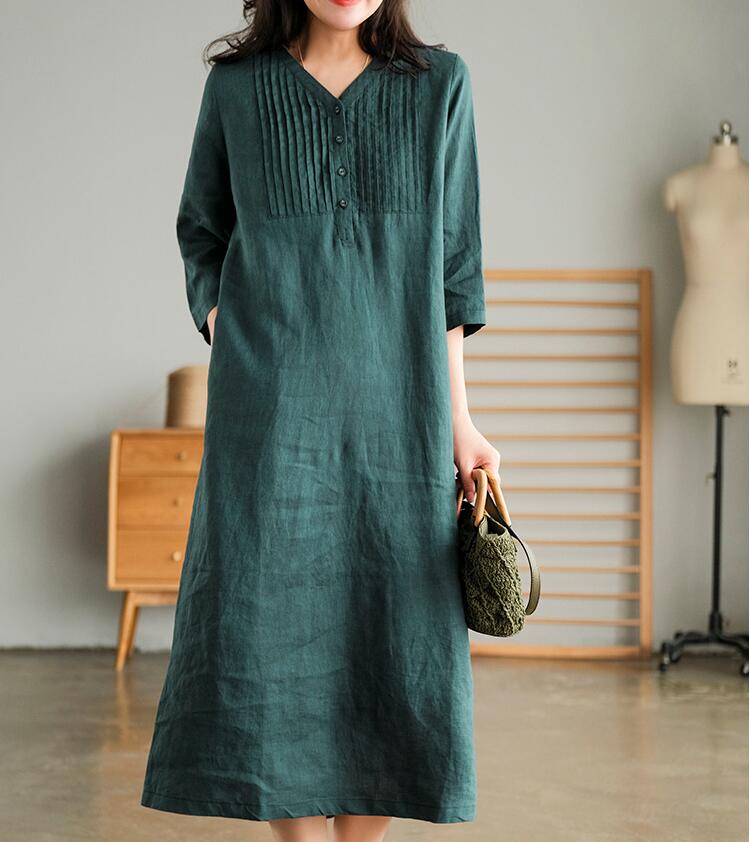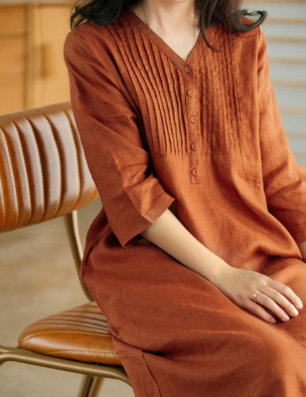 リネンワンピース ロングワンピース ナ