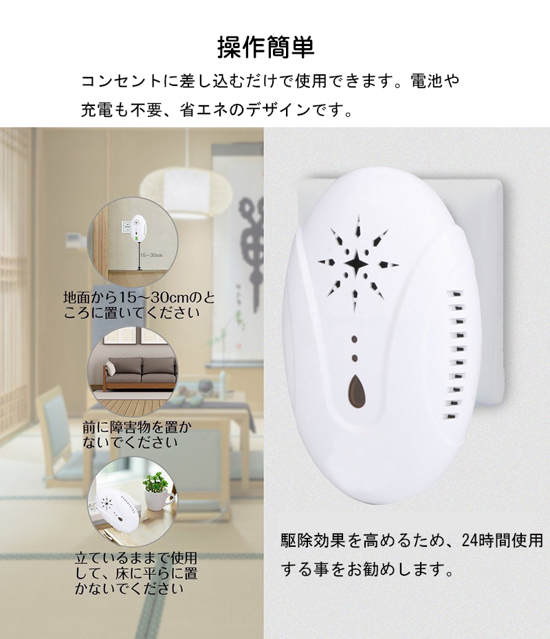 ◆【安全、環境保護、経済】化学物質を使用せず、人間と犬猫が聞き取れない超音波と電磁波を利用して、子供やペットがいても安心に使えます。または電気製品やパソコンや電話にも影響がありません。