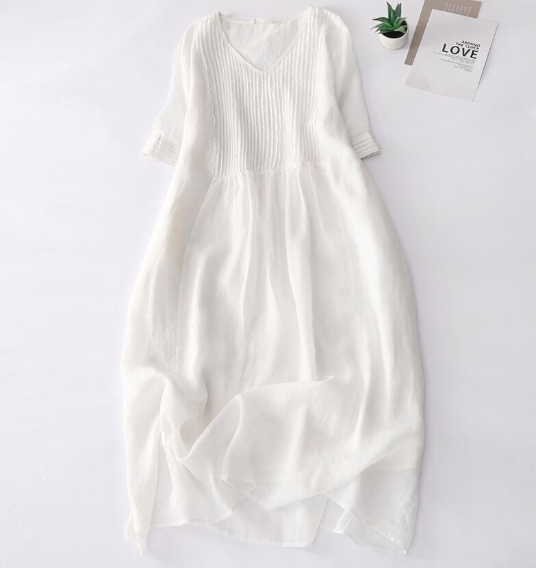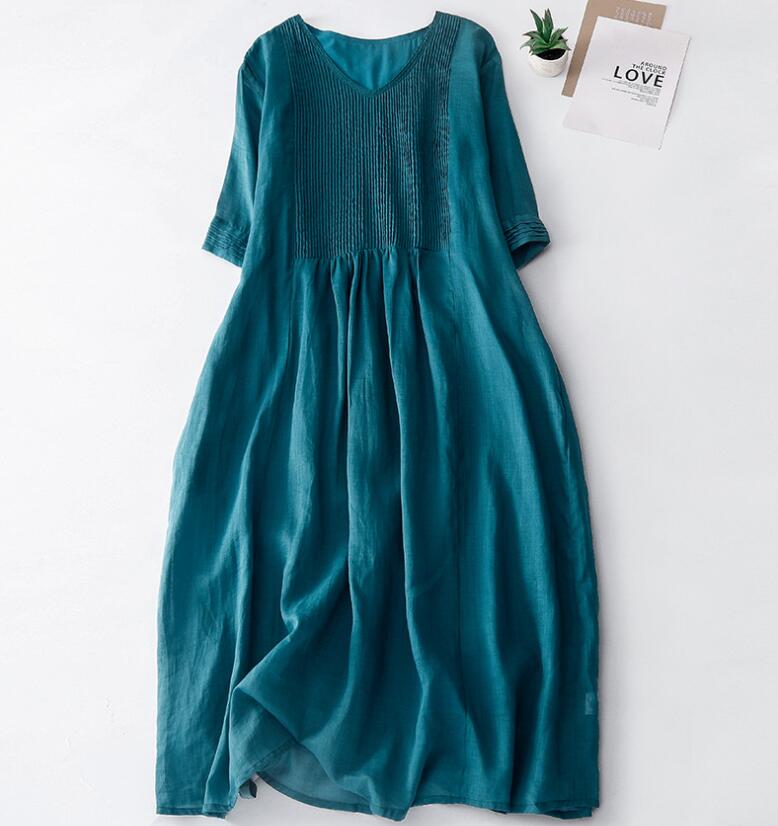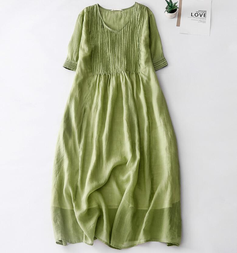リネンワンピース ロングワンピース ナ