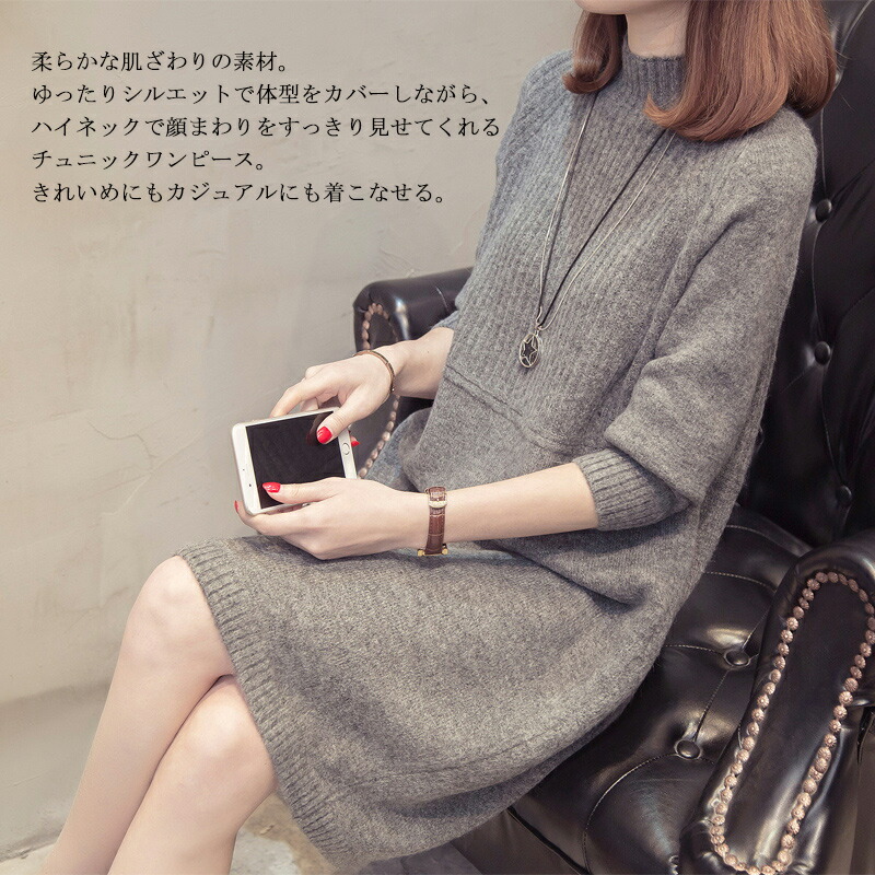 チュニック ハイネック 防寒 ロングニ