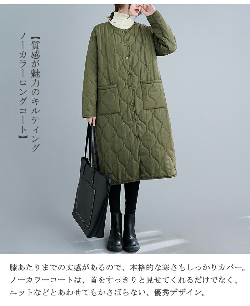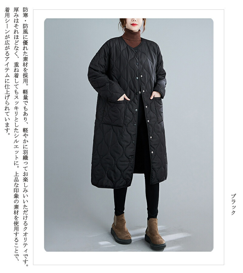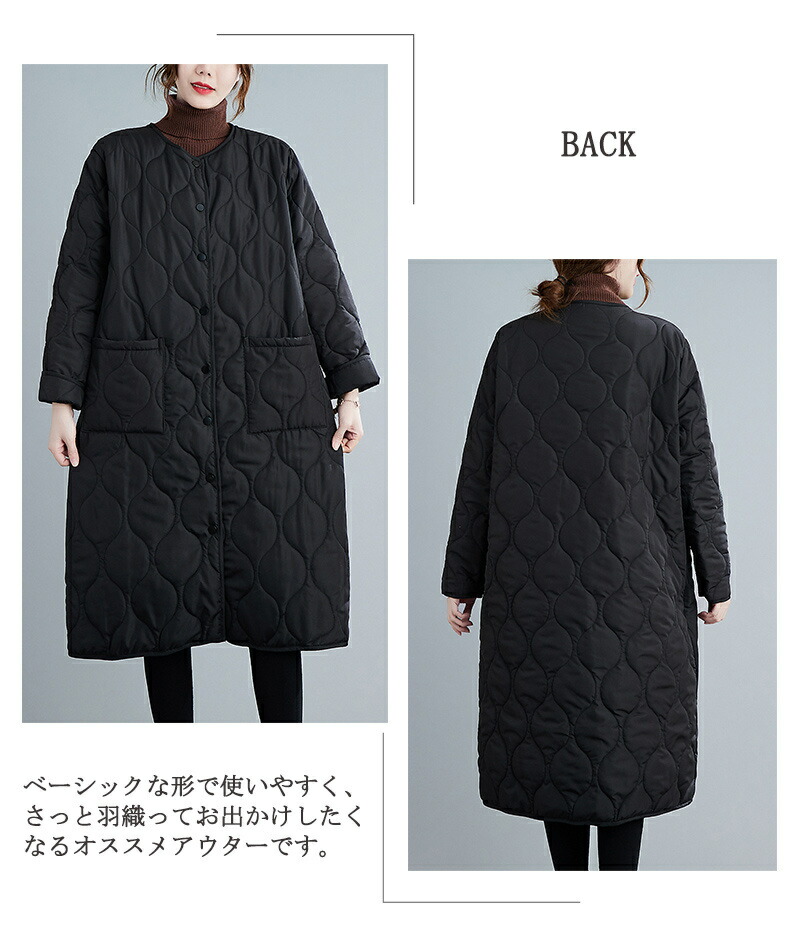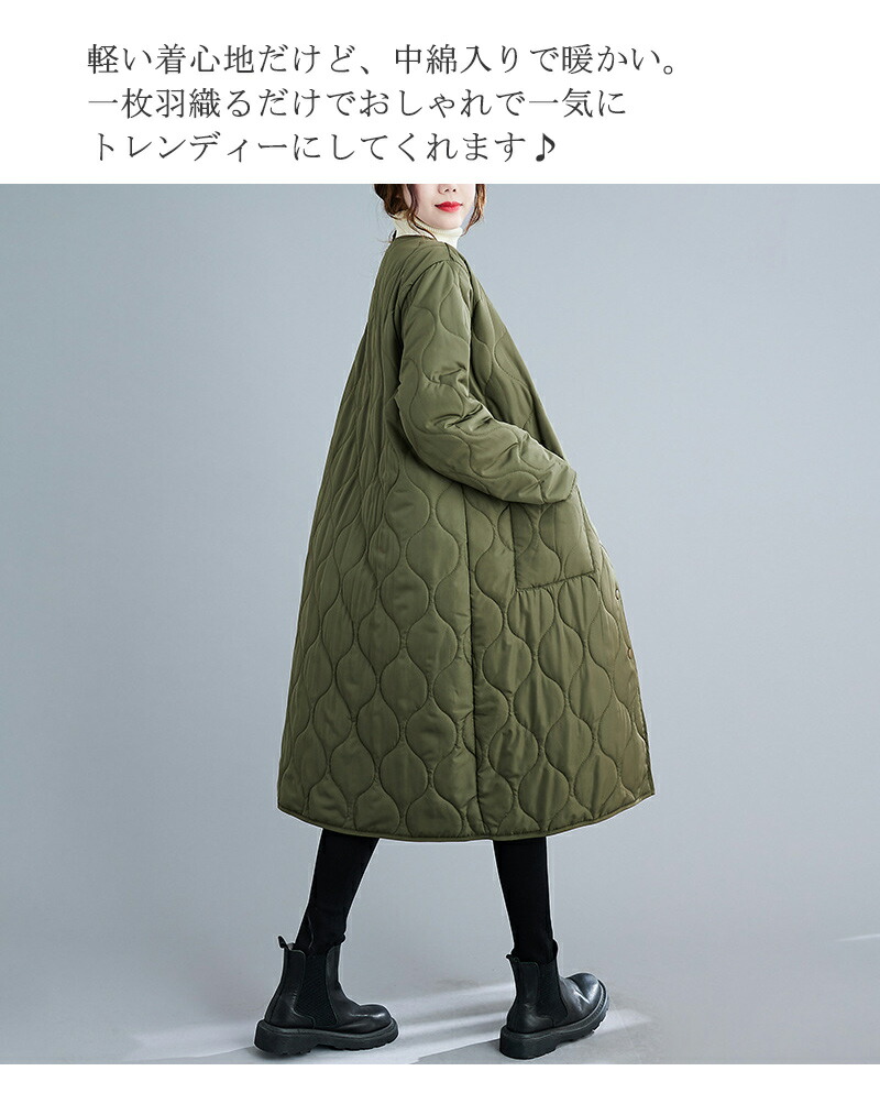 中綿コート 無地 キルティング 秋 軽