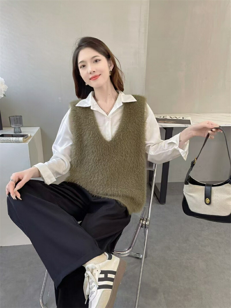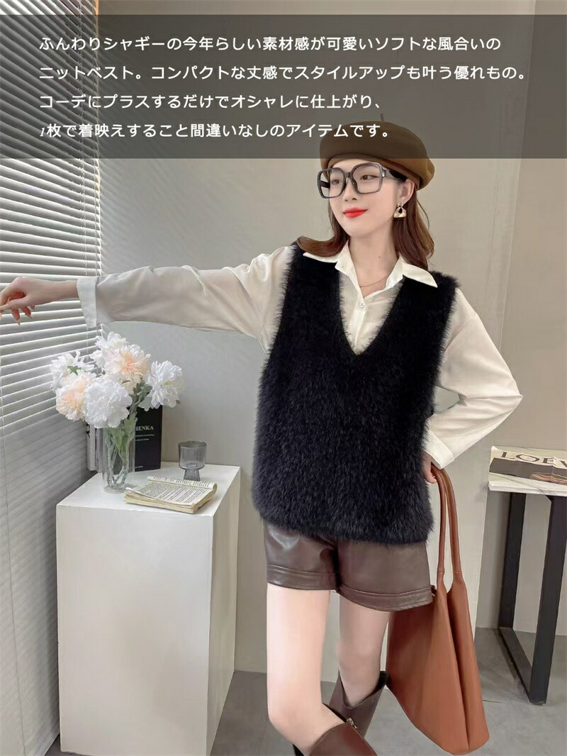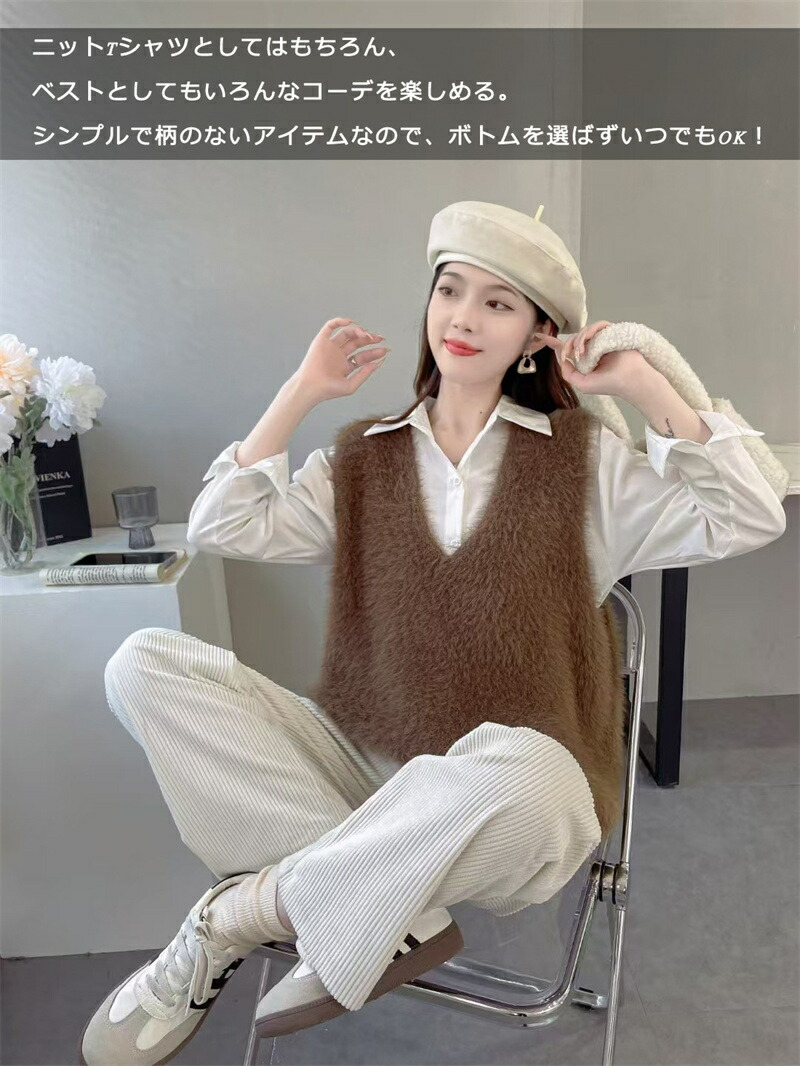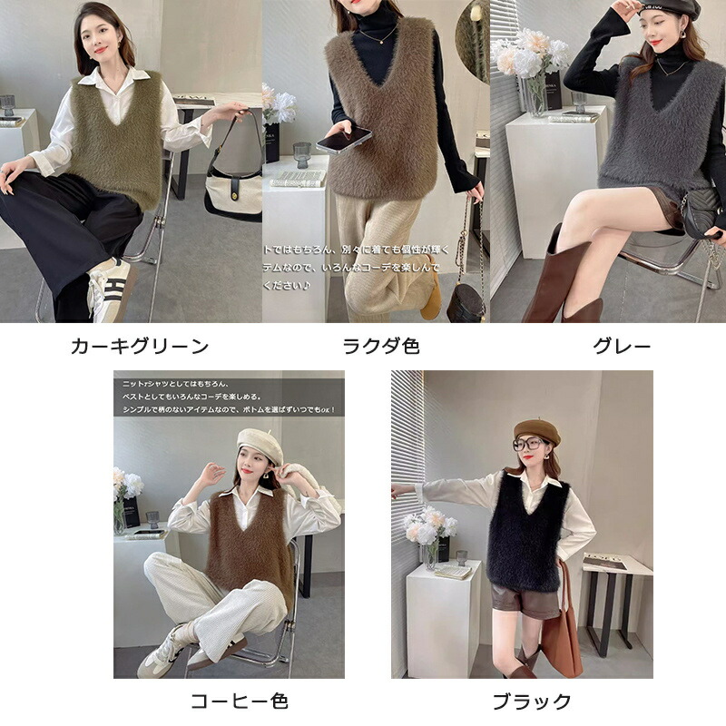 Vネック ベスト ニットベスト レディ