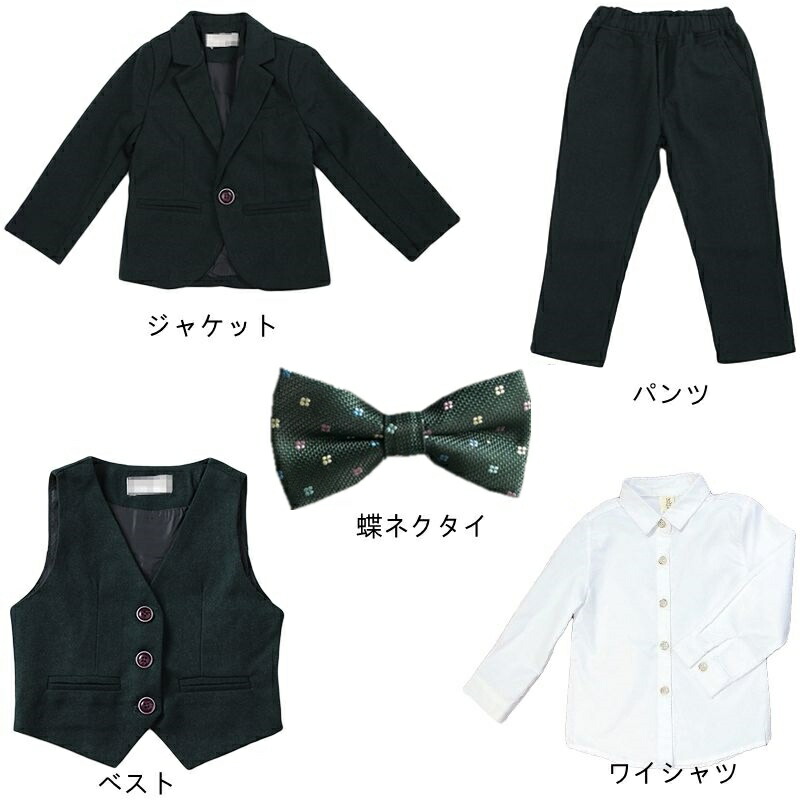 5点セット ジャケット パンツ ワイシャツ ベスト 蝶ネクタイ ピアノ発表会 入学式 卒業式 入園式 七五三 誕生日プレゼント 結婚式 母の日 初節句 90 100 110 120 130 140