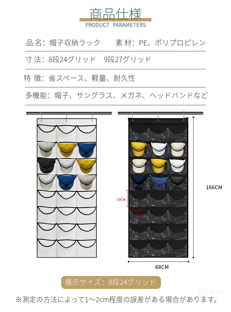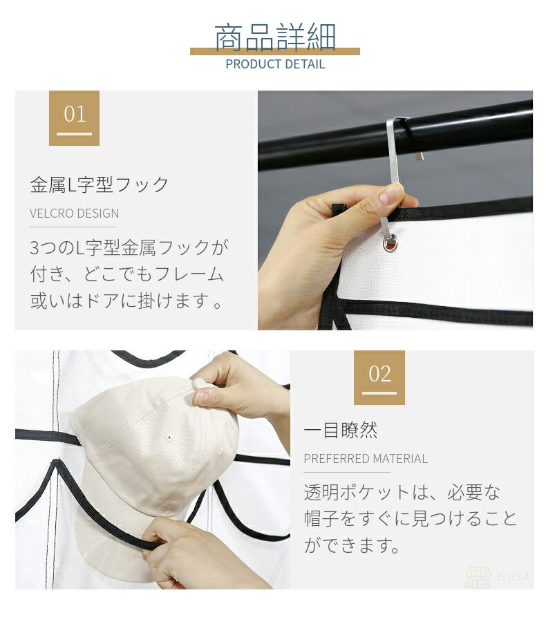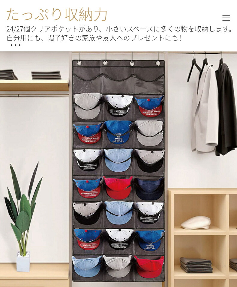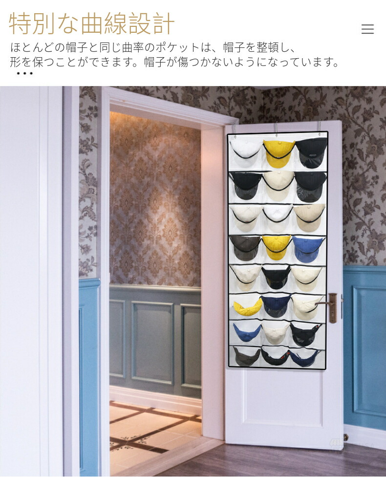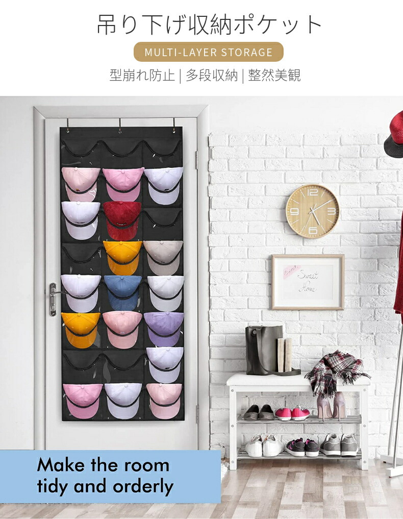 フック付き キャップ収納 折りたたみ 省スペース シューズ収納 ハット愛好家に最適な吊り下げ収納ポケット