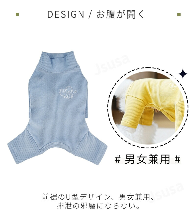長袖4脚設計!寒さ対策に最適!犬の部屋着/ルームウェア/パジャマ/抜け毛や冷房対策にも!