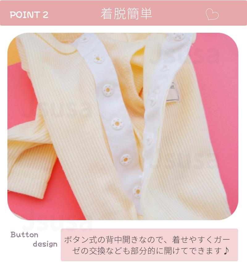 ボタン式の背中開きなので、着せやすくガーゼの交換なども部分的に開けてできます。