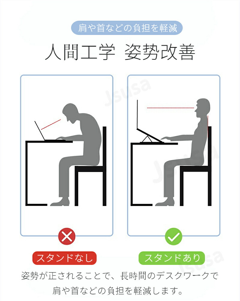ラップトップを涼しく保つのに役立ちます 角度が調整でき、姿勢の改善に役立ちます。