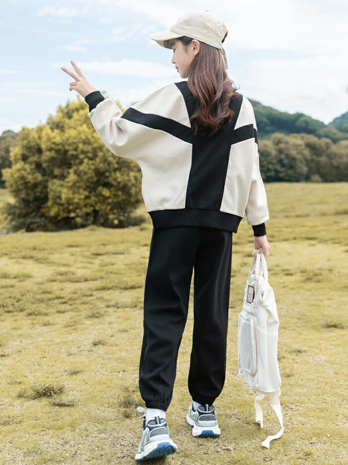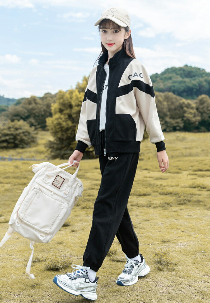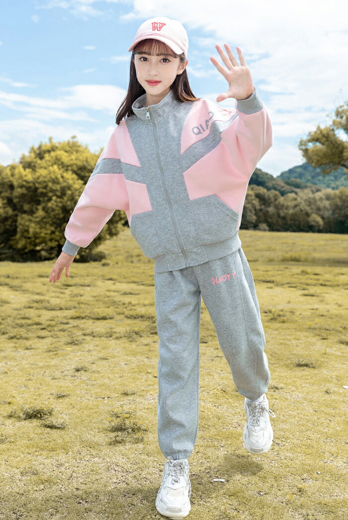 商品名:子供服 女の子 ジャージ 上下セット セットアップ スポーツウェア 長袖 ルームウェア 2点セット 上下セット 韓国 子供服 小学生 切替 ガールズ 春秋 運動着 ジュニア服 通園 通学 カジュアル パーカー ゆったり トレーニング 体育 配色 姉妹 双子 おしゃれ HIPHOP ダンス 衣装