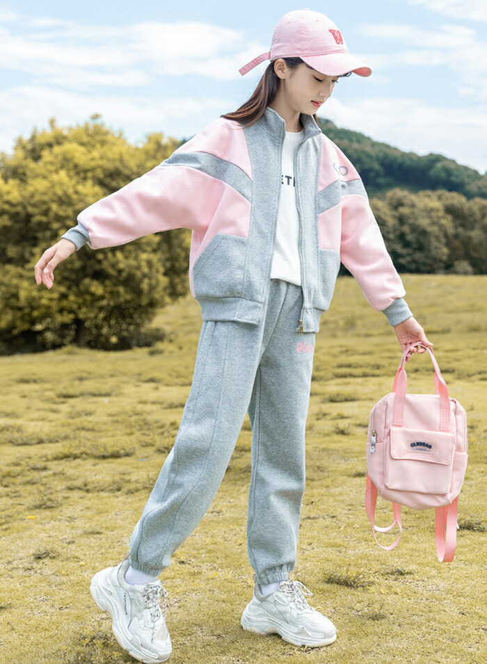 セットアップ キッズ ジャージ ファッション 運動スポーツ 散歩 レジャー 女の子2点セット演出 体育着 体操着 通勤 お出かけ アウトウエア 配色 春秋 長袖 ロングパンツ
